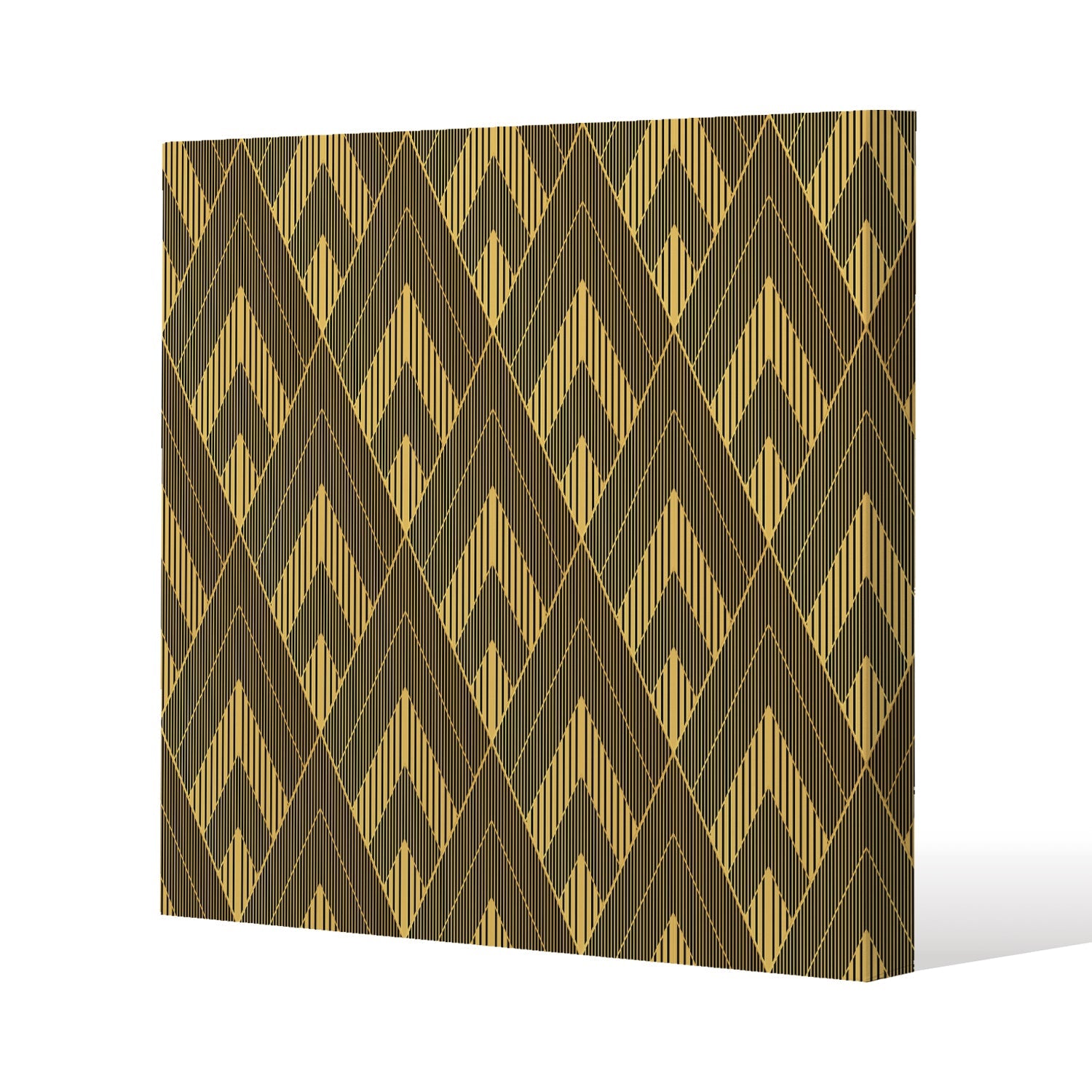 Black & Gold Striped Triangles Slim Style Canvas Print 75x75cm , 15mm Slim Real wood.