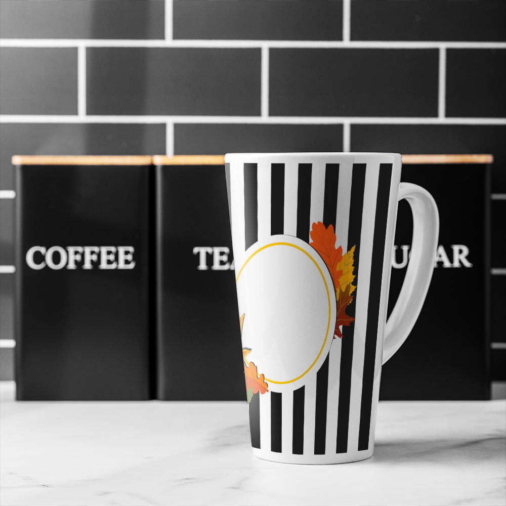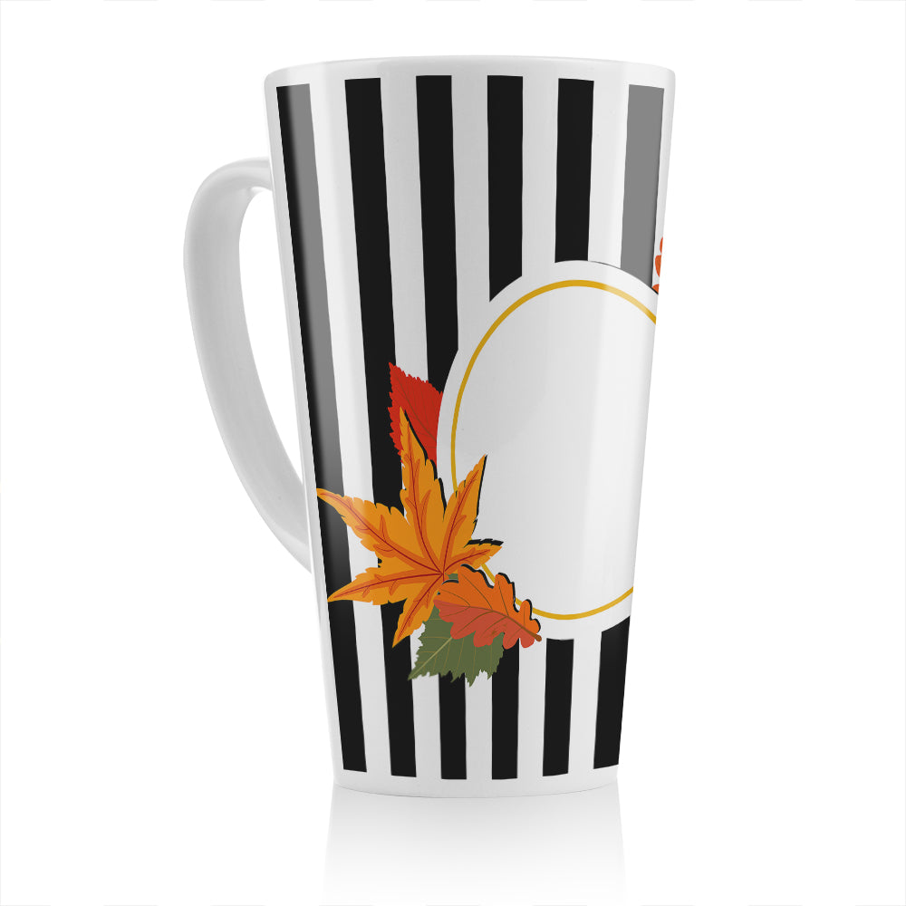 Black Stripes Autumn Leaves Latte Mug