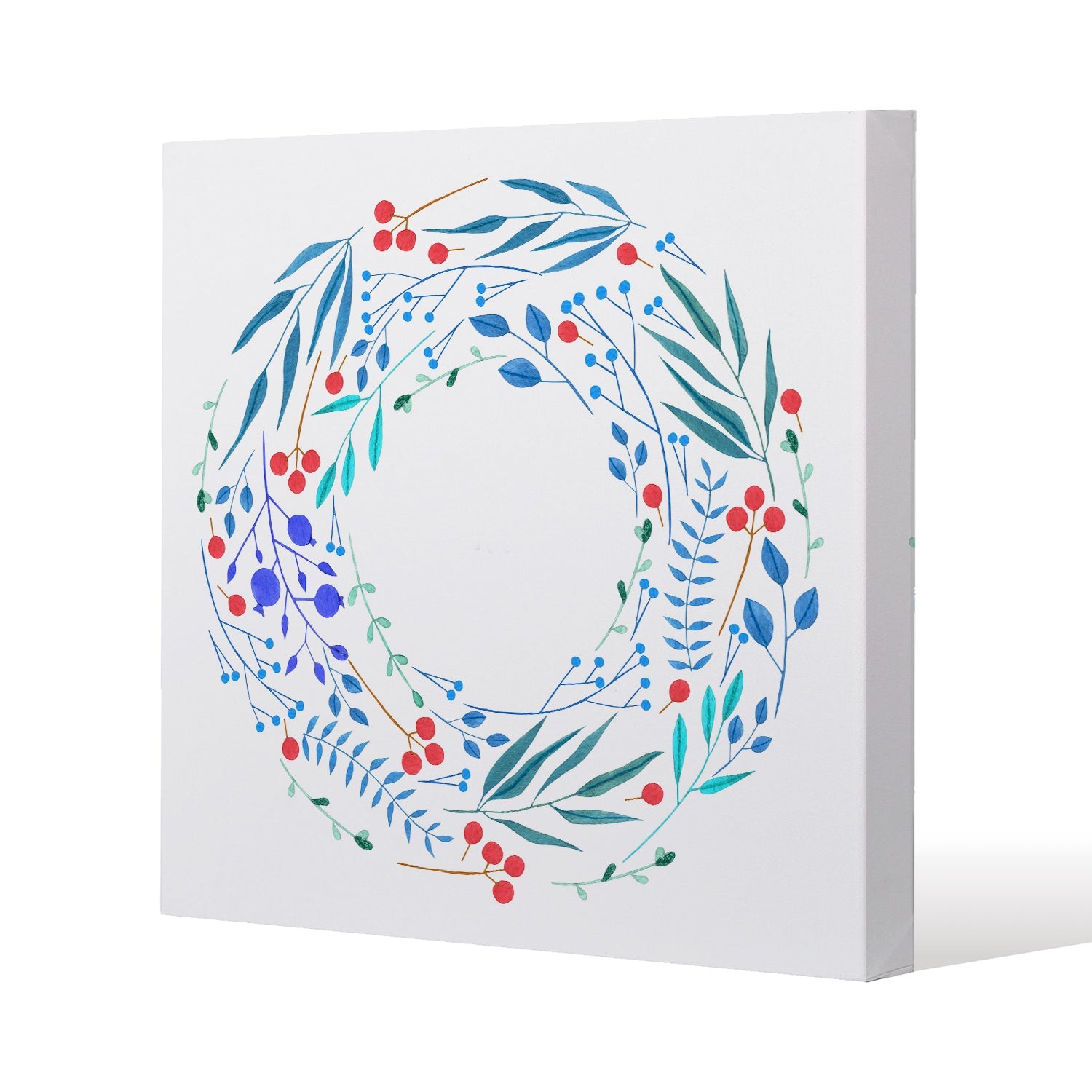 Blue Decorative Reath Slim Style Canvas Print 50x50cm , 15mm Slim Real wood.