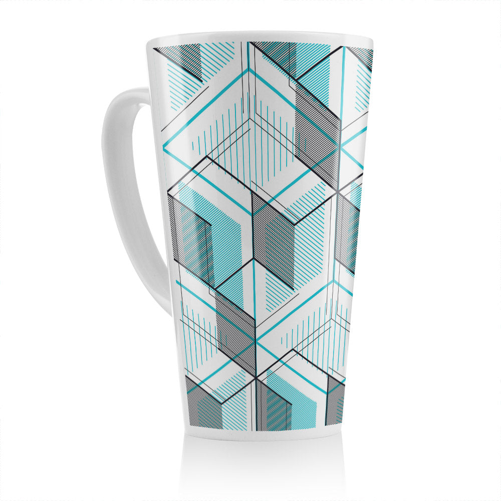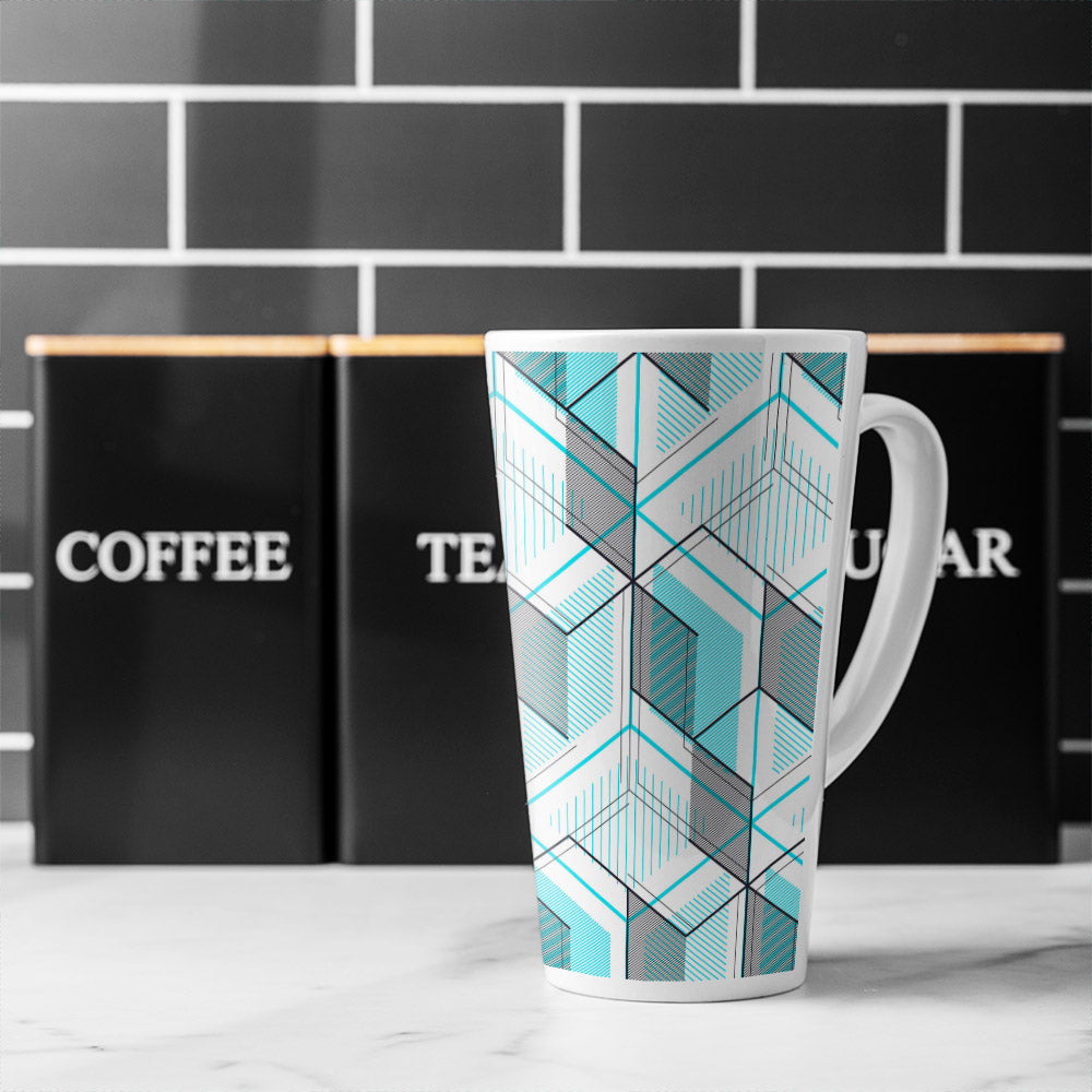 Blue Geometric Hexagons Latte Mug