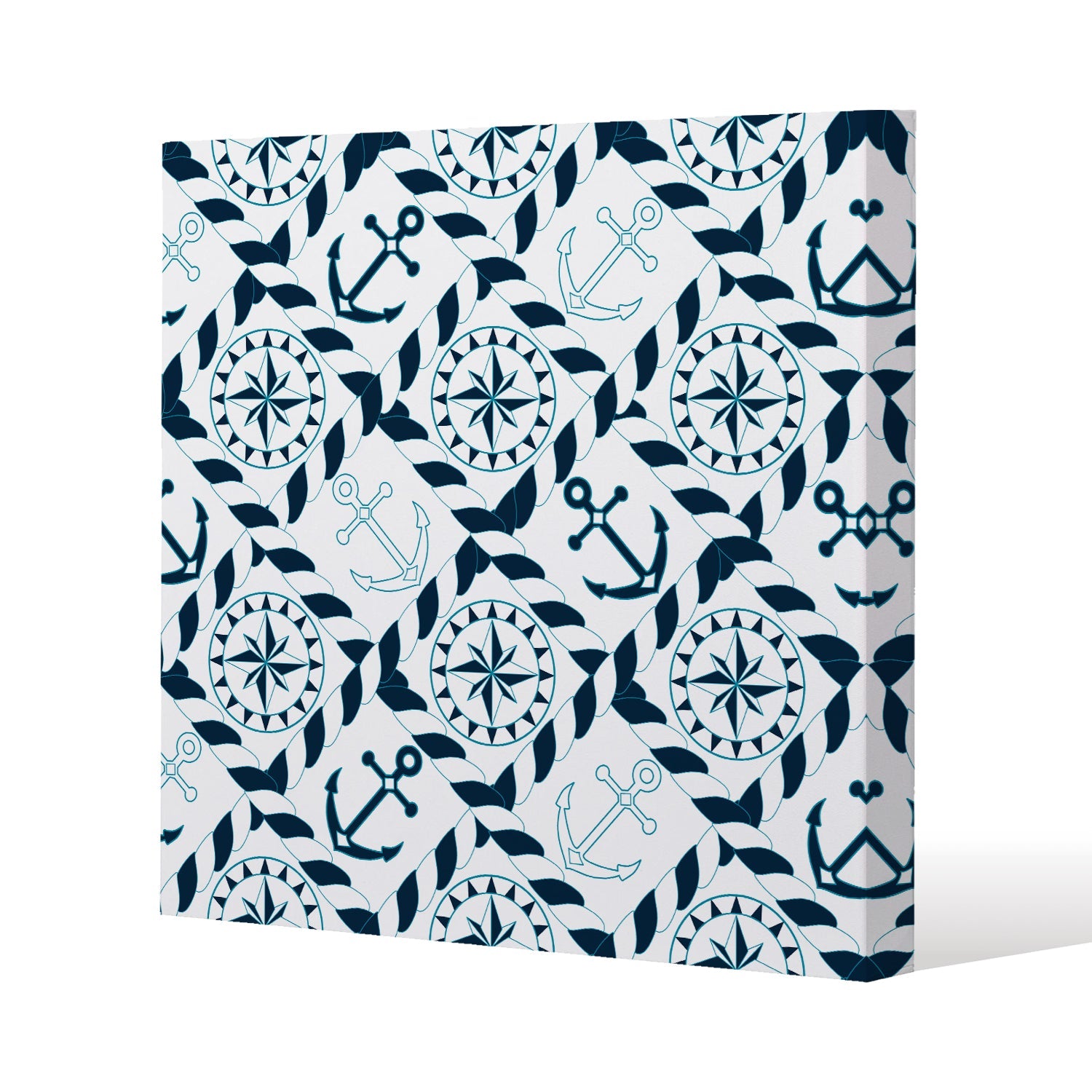 Blue Nautical Elements Slim Style Canvas Print 20x20cm , 15mm Slim Real wood.