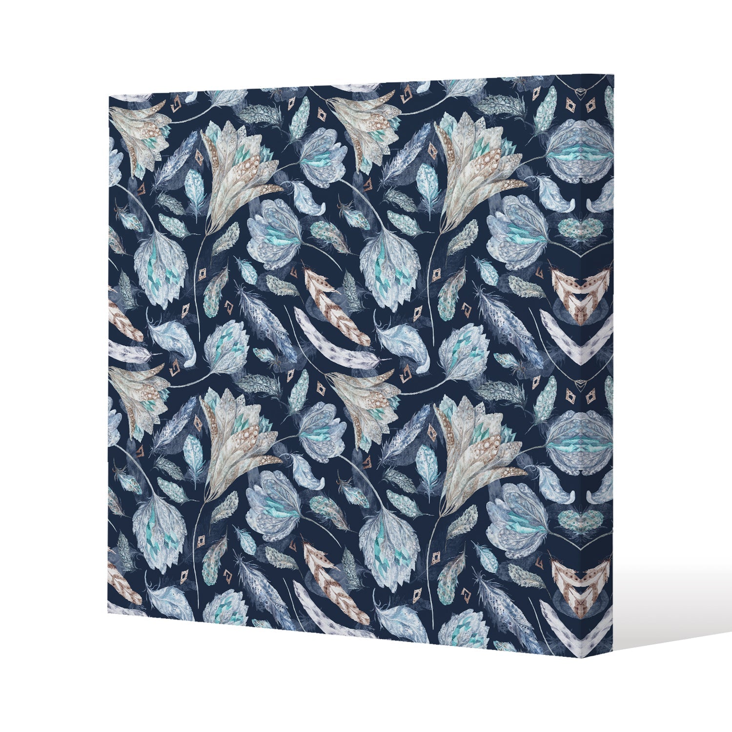 Boho Chic Indigo Pattern Slim Style Canvas Print 50x50cm , 15mm Slim Real wood.