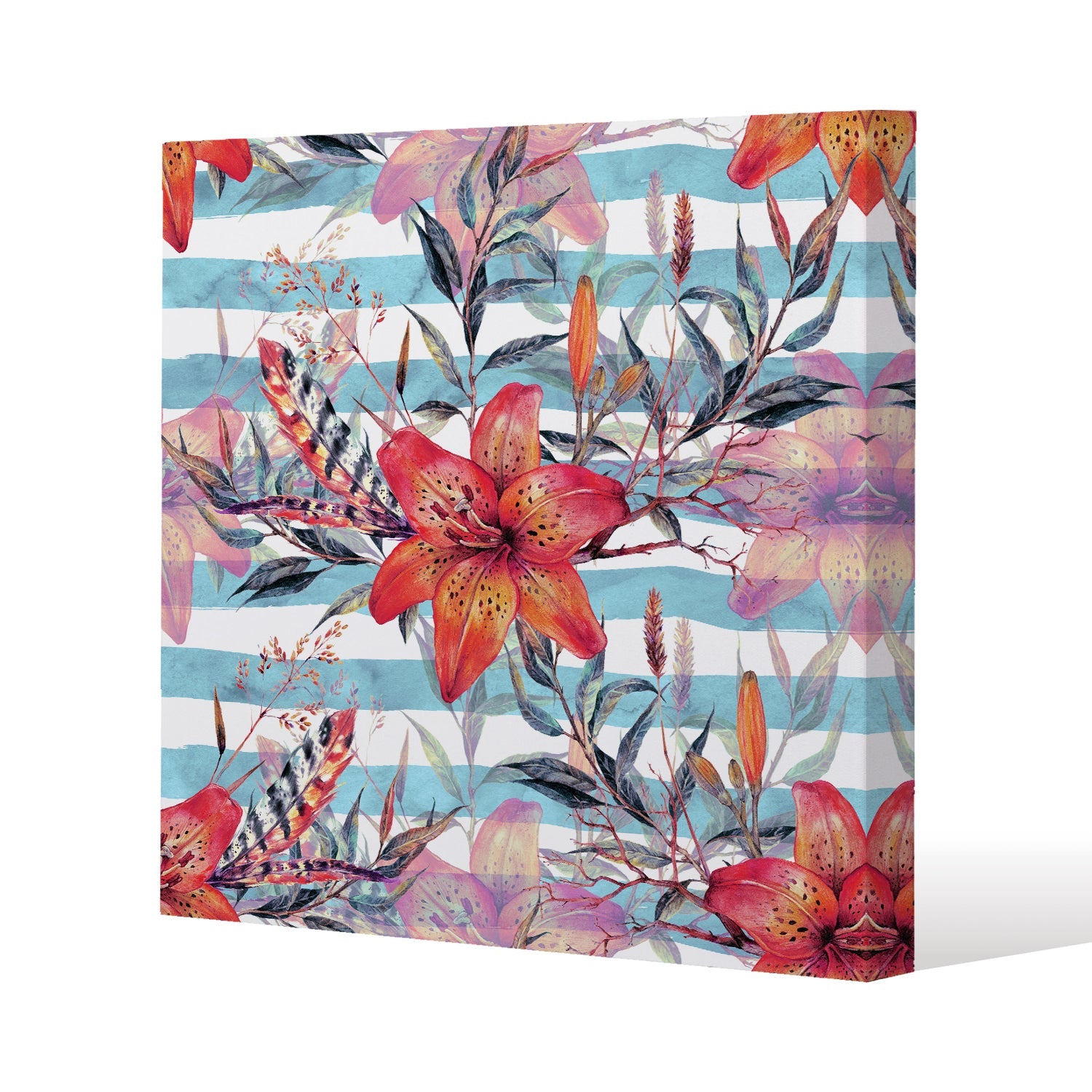 Bouquet of watercolor tiger lilies Slim Style Canvas Print 20x20cm , 15mm Slim Real wood.