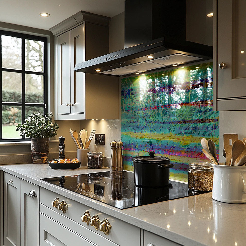 Bring bold artistry into your kitchen with a splashback that combines vibrant colors and sleek, toughened glass. The durable, heat-resistant material is built to last, while its smooth, glossy surface is easy to clean. Light-reflecting and eye-catching, this splashback adds a modern touch to any space. A perfect blend of style and functionality for today’s kitchens.