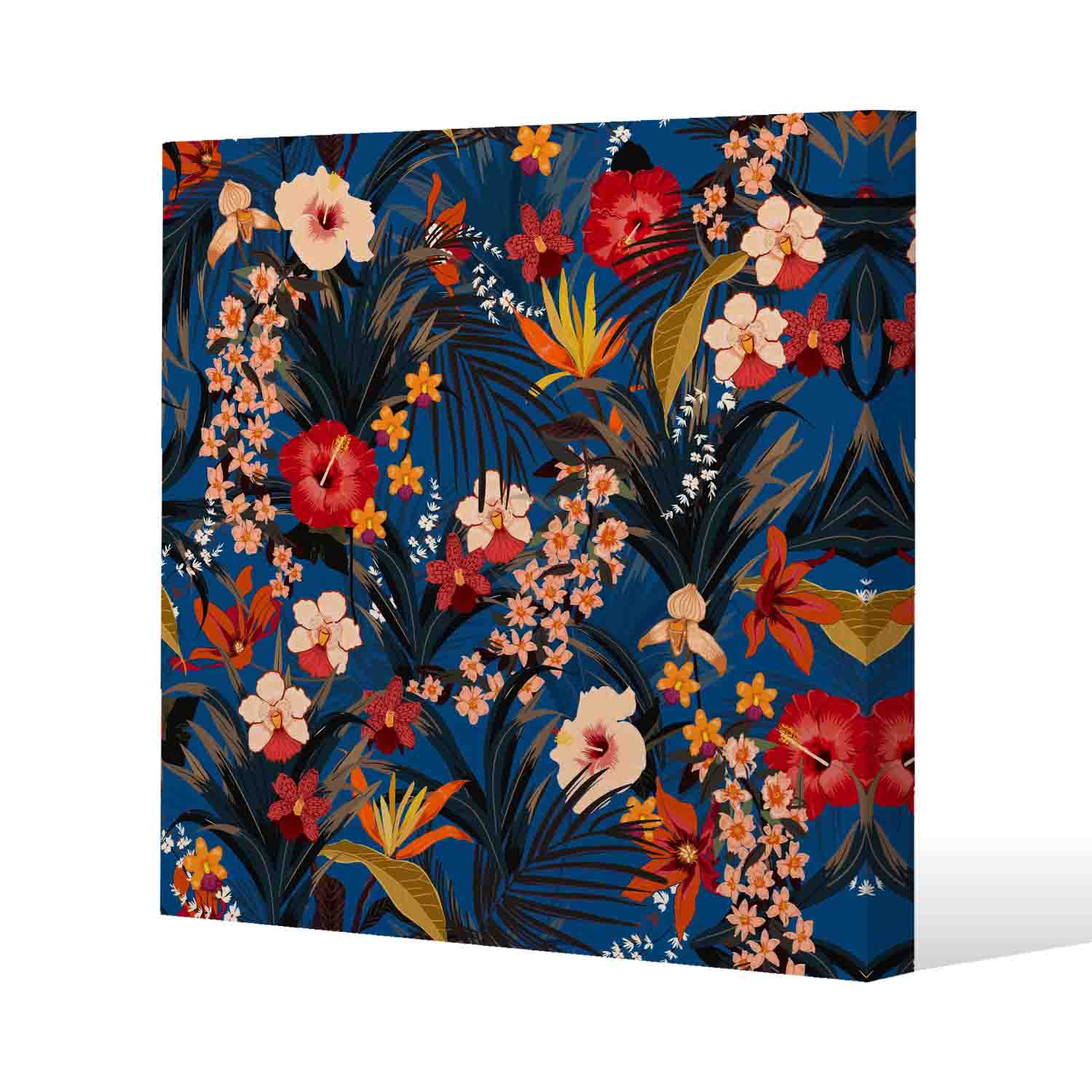 Bright Red & Orange Tropical Flowers & Plants Slim Style Canvas Print 60x60cm , 15mm Slim Real wood.