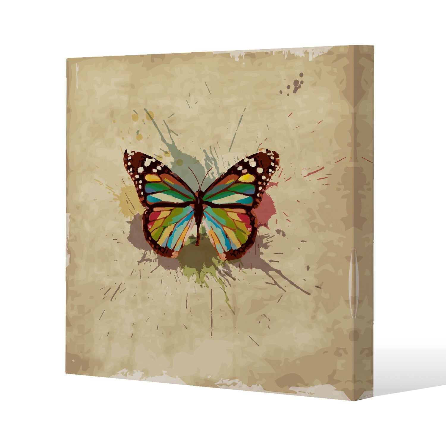 Butterfly & Paint Splats Slim Style Canvas Print 50x50cm , 15mm Slim Real wood.