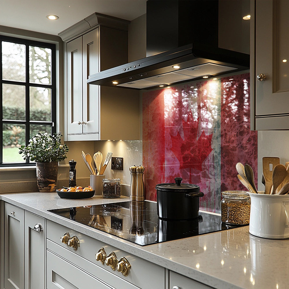 Bring bold artistry into your kitchen with a splashback that combines vibrant colors and sleek, toughened glass. The durable, heat-resistant material is built to last, while its smooth, glossy surface is easy to clean. Light-reflecting and eye-catching, this splashback adds a modern touch to any space. A perfect blend of style and functionality for today’s kitchens.