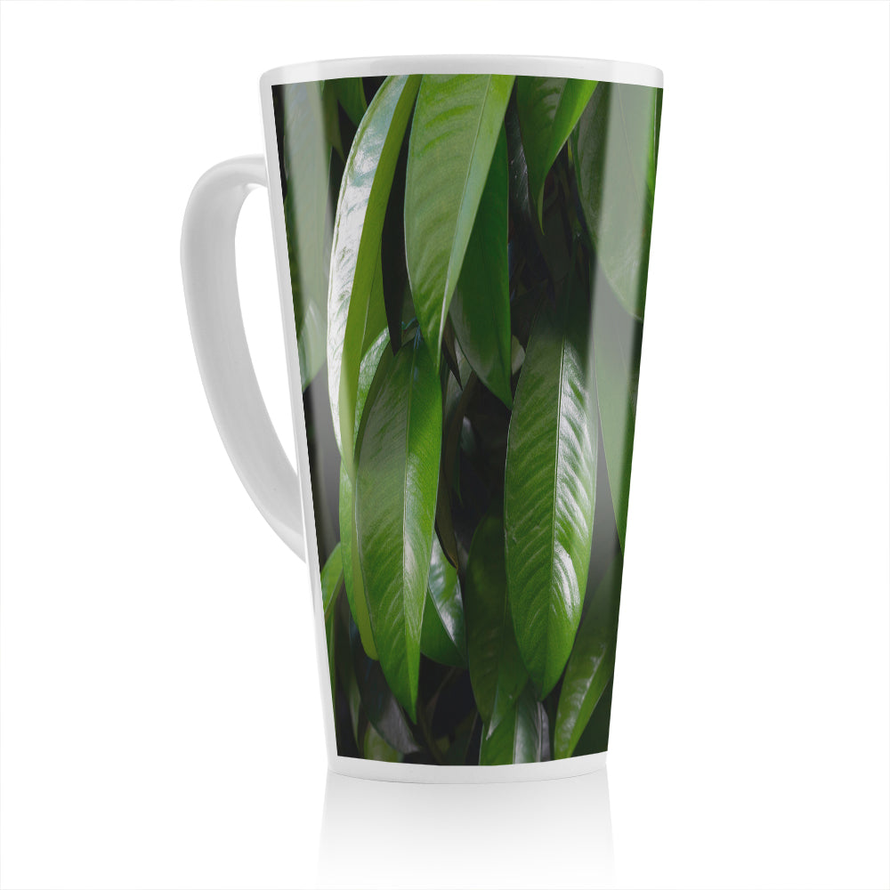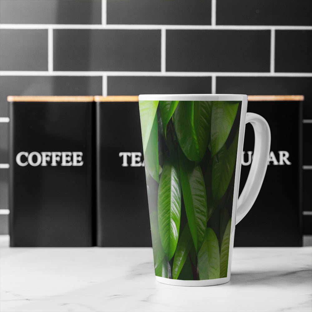 Closeup of beautiful glossy green leaves Designer Latte Mug