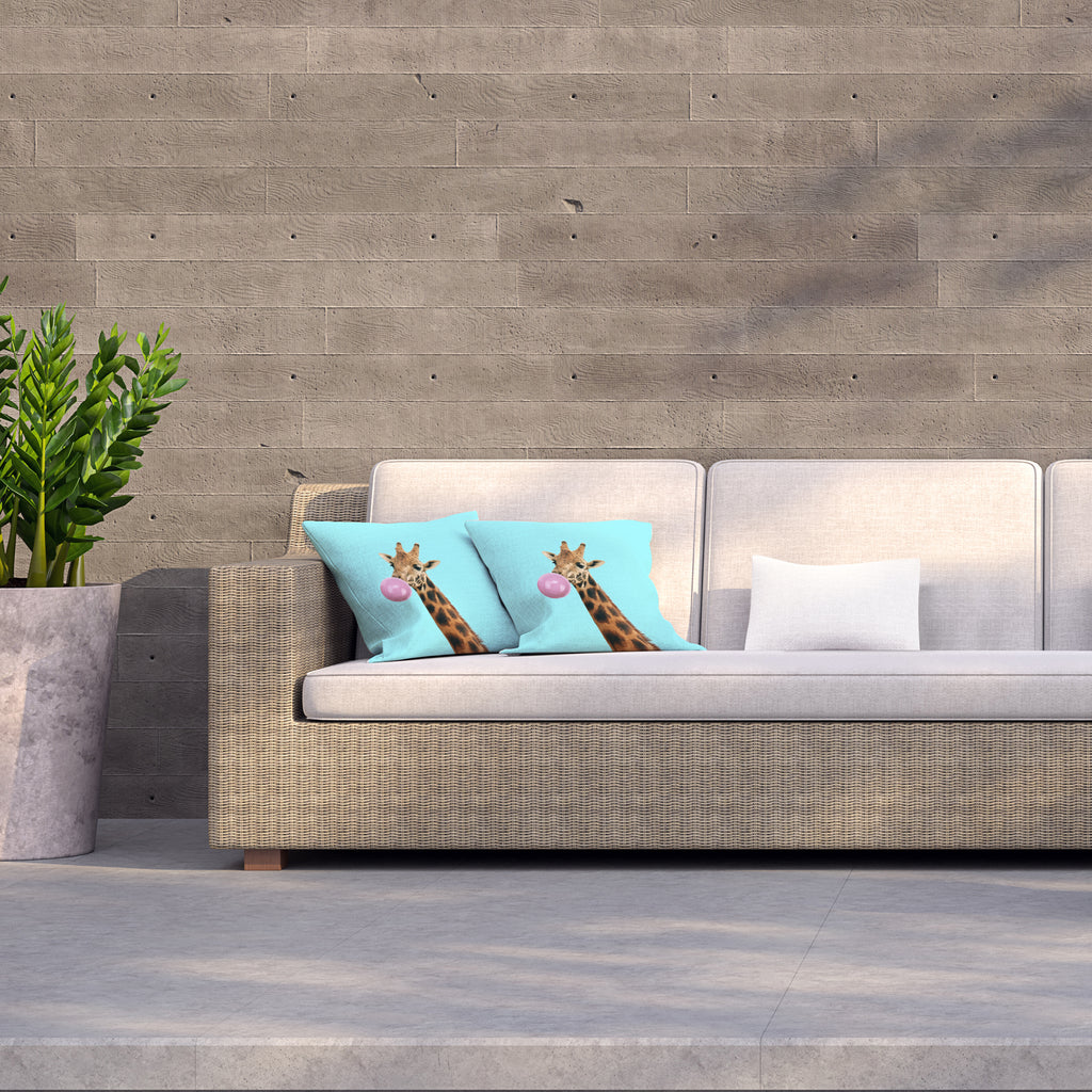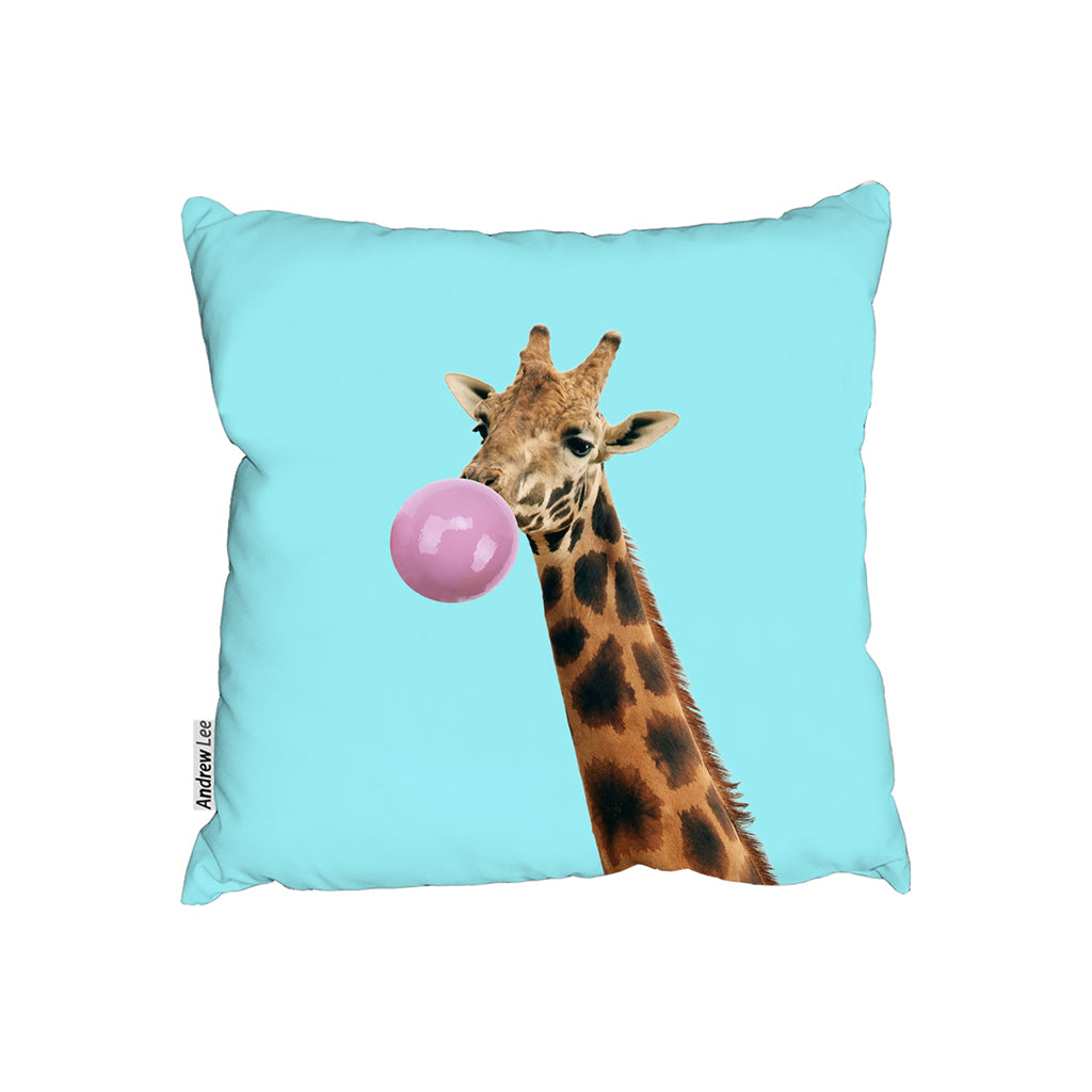 Concept Giraffe With Bubble Gum On Color Background (Outdoor Cushion)