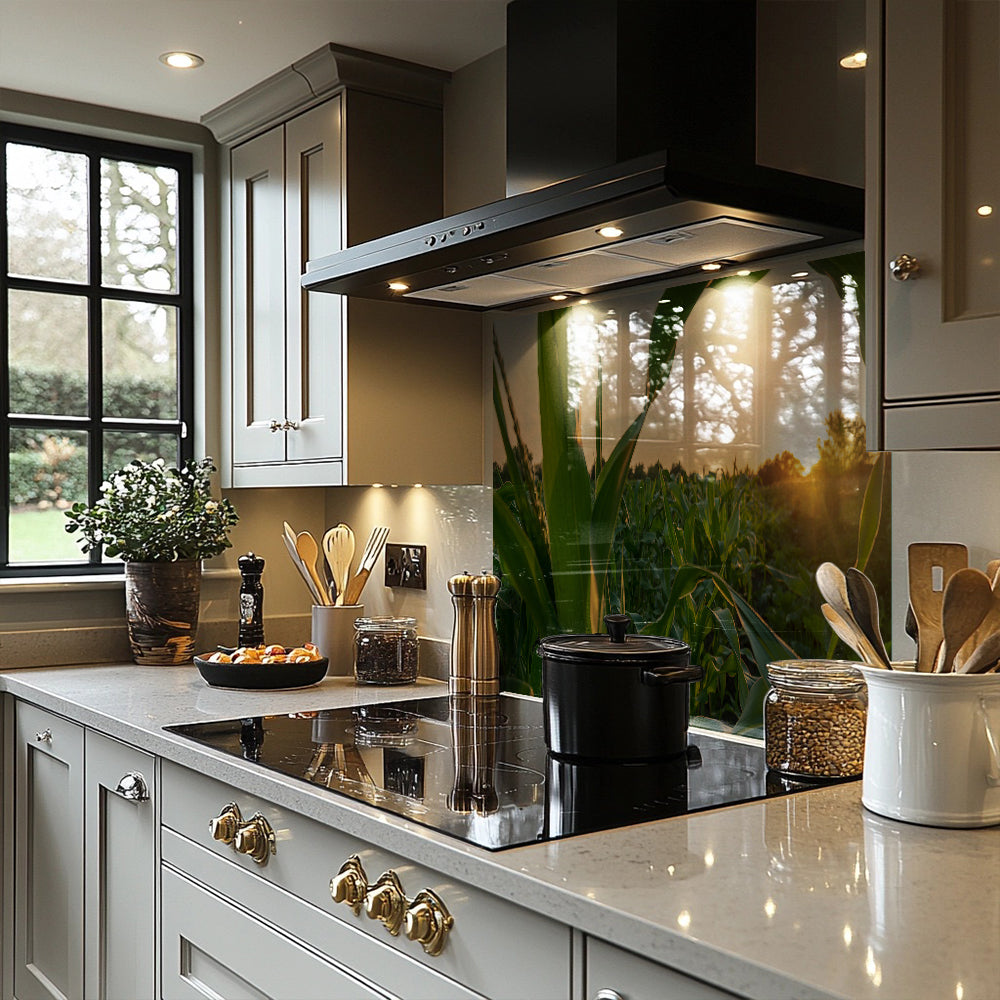 Bring bold artistry into your kitchen with a splashback that combines vibrant colors and sleek, toughened glass. The durable, heat-resistant material is built to last, while its smooth, glossy surface is easy to clean. Light-reflecting and eye-catching, this splashback adds a modern touch to any space. A perfect blend of style and functionality for today’s kitchens.
