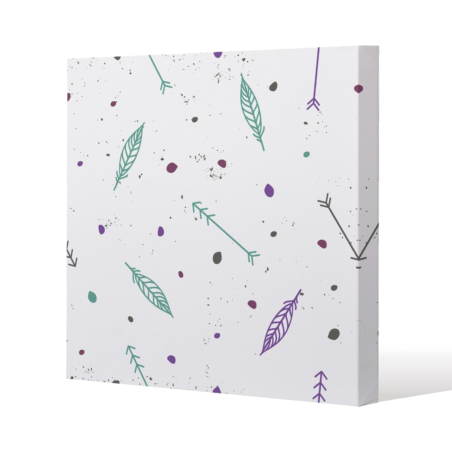 Cute cartoon seamless vector pattern with feathers and arrows in boho style Slim Style Canvas Print 40x40cm , 15mm Slim Real wood.