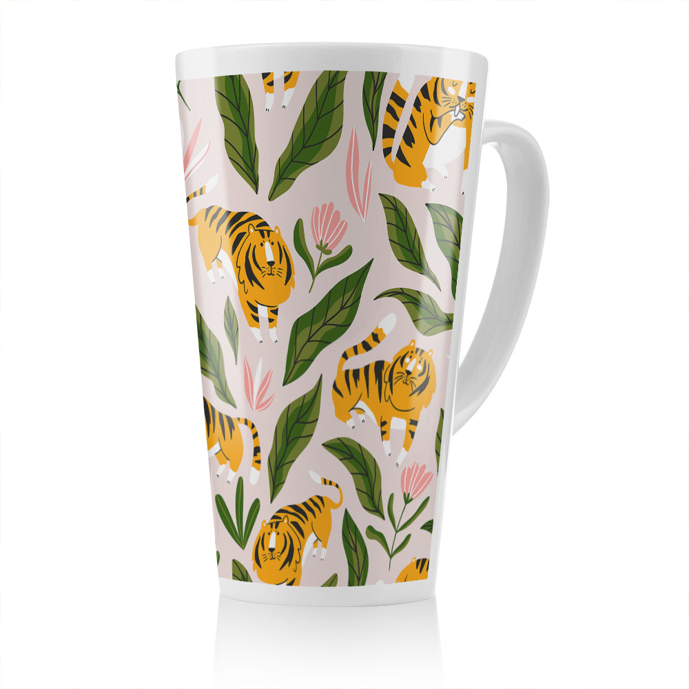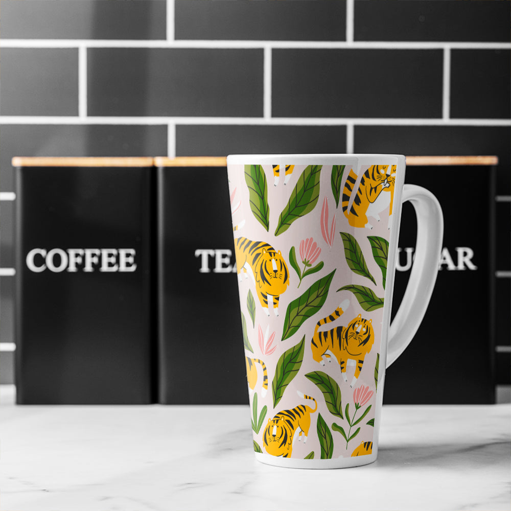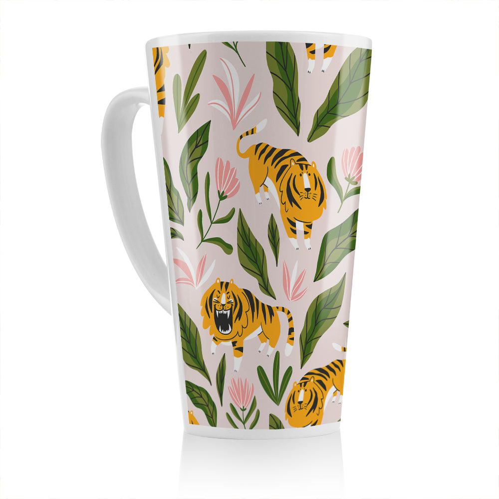 Cute tigers and tropical leaves and flowers Designer Latte Mug