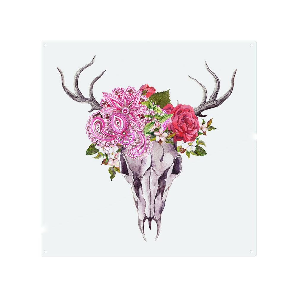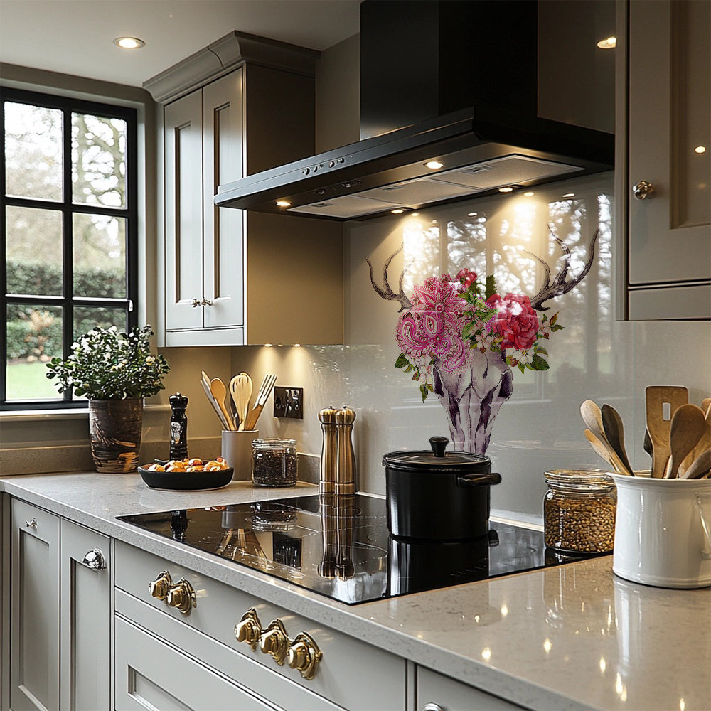 Deer Animal Skull With Flowers And Feathers Splash Back