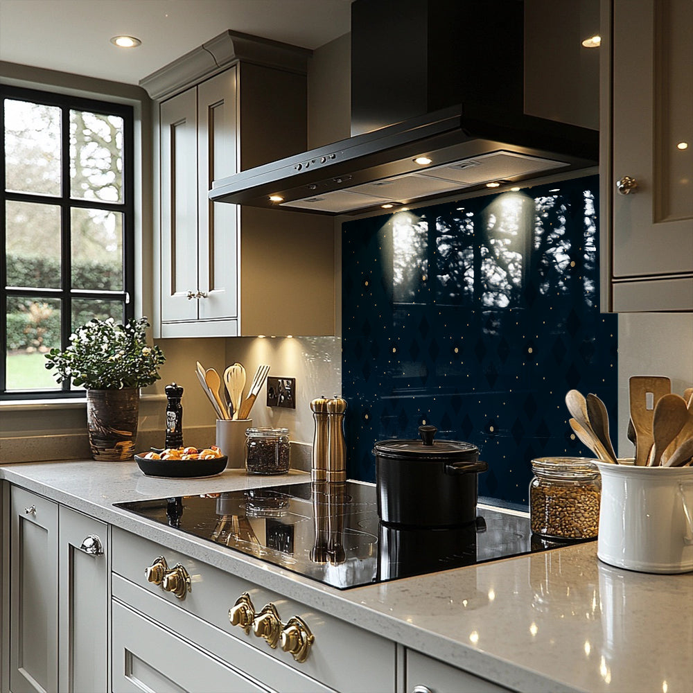 Bring bold artistry into your kitchen with a splashback that combines vibrant colors and sleek, toughened glass. The durable, heat-resistant material is built to last, while its smooth, glossy surface is easy to clean. Light-reflecting and eye-catching, this splashback adds a modern touch to any space. A perfect blend of style and functionality for today’s kitchens.