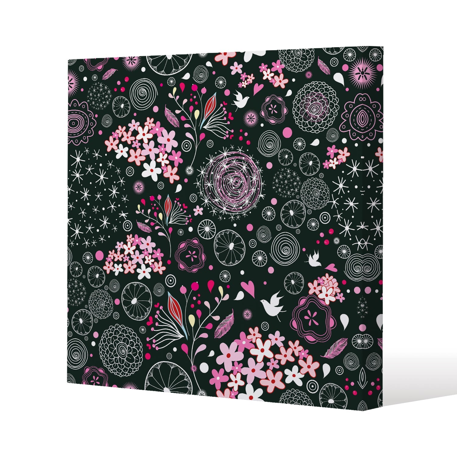 Different Flowers, Shapes & Birds Slim Style Canvas Print 40x40cm , 15mm Slim Real wood.