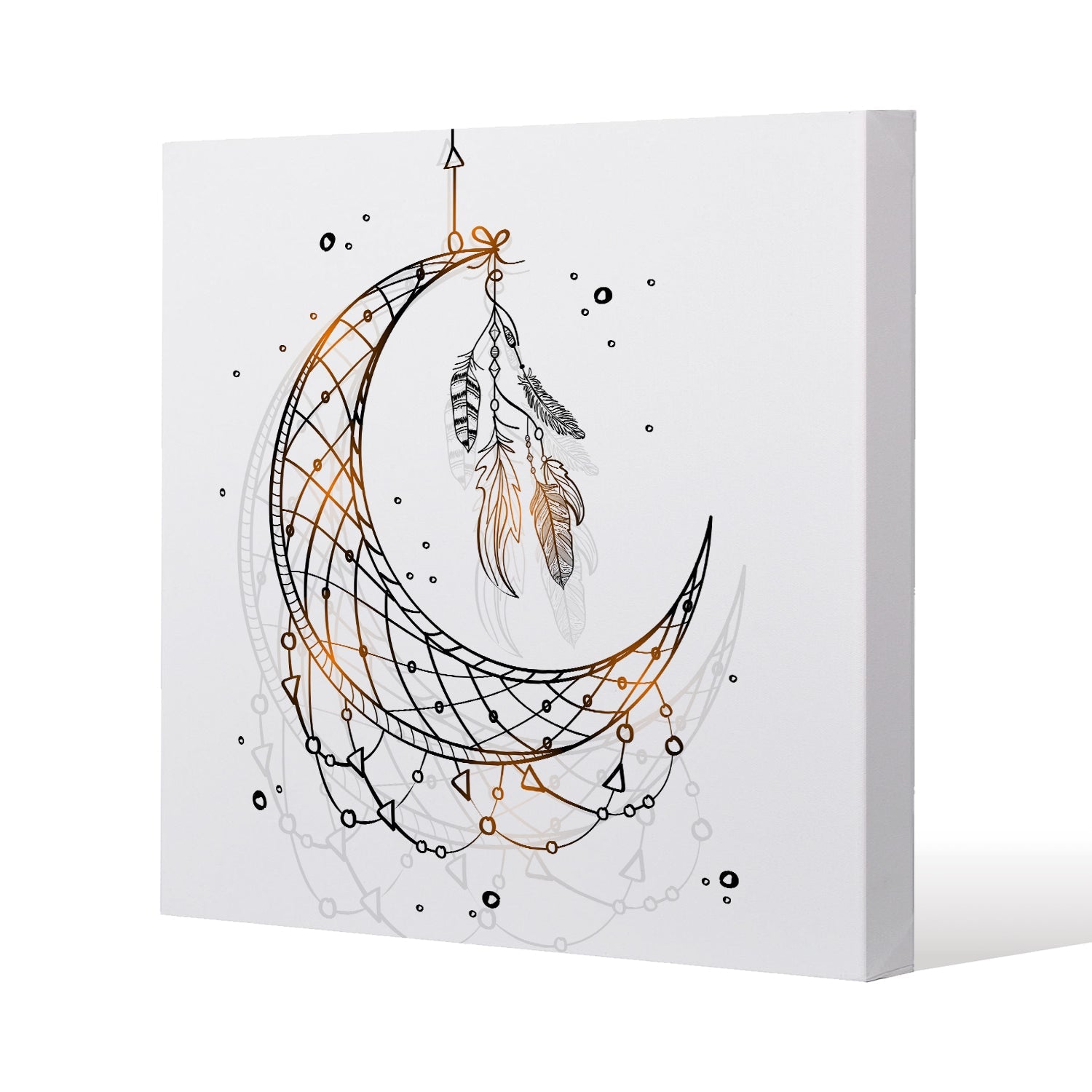 Dream Catcher with Crescent Moon Slim Style Canvas Print 40x40cm , 15mm Slim Real wood.