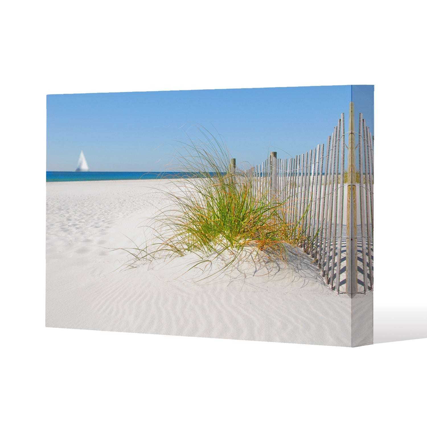 dune fence by sea grass with sailboat on horizon Slim Style Canvas Print 60x90cm , 15mm Slim Real wood.