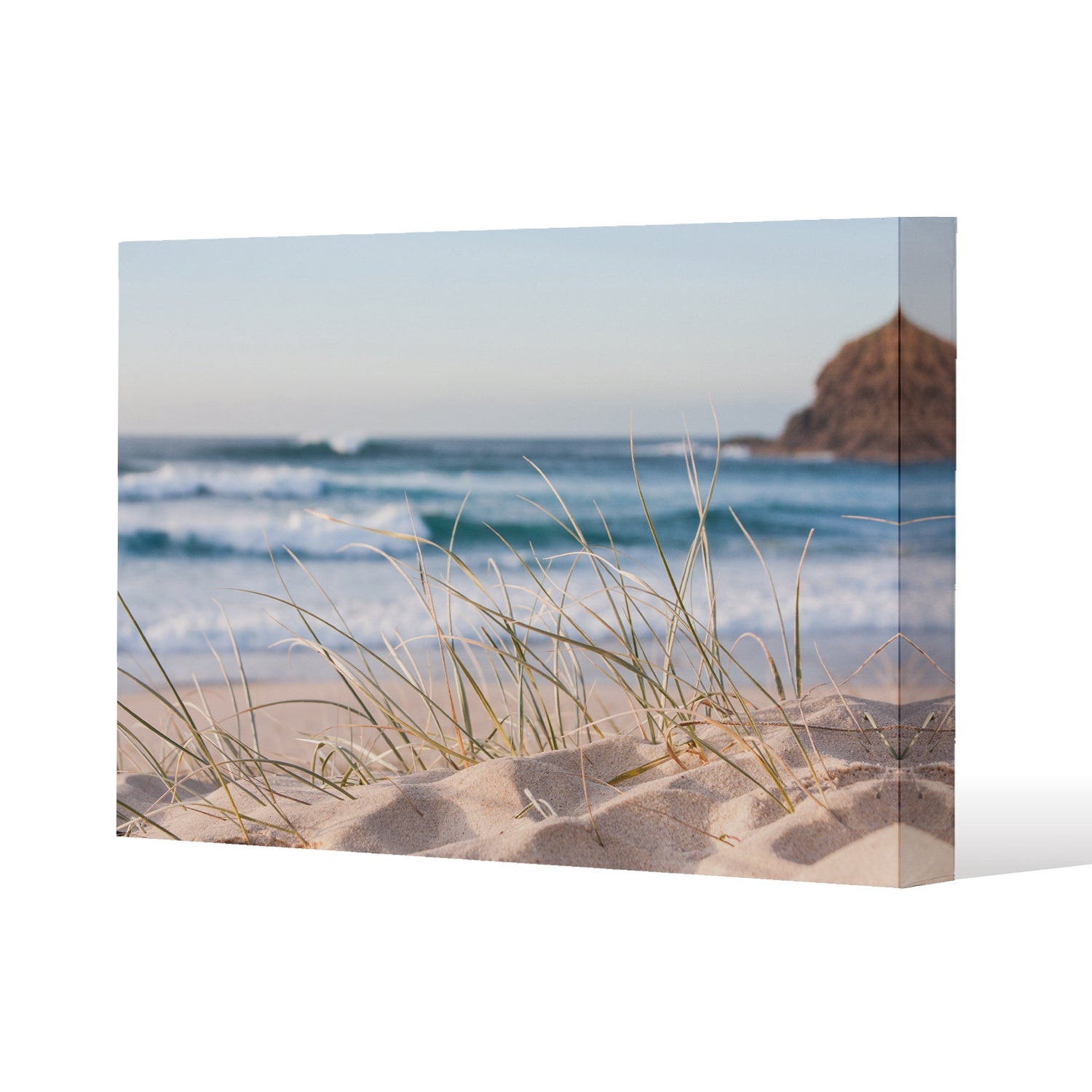 dune grass in Australia with turquoise surf waves of the pacific ocean Slim Style Canvas Print 75x100cm , 15mm Slim Real wood.