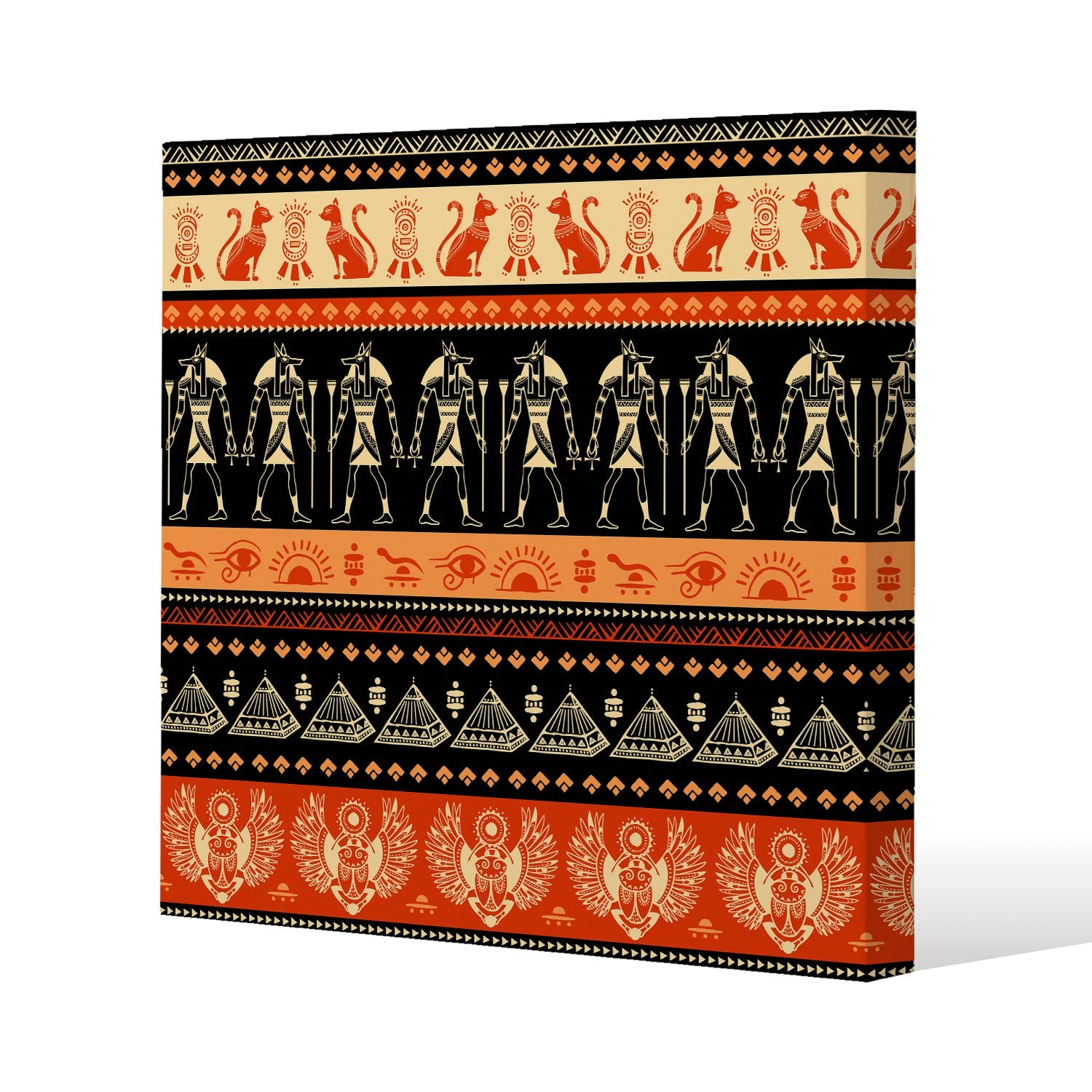 Egyptian Heiroglyphs in Orange & Black Slim Style Canvas Print 50x50cm , 15mm Slim Real wood.