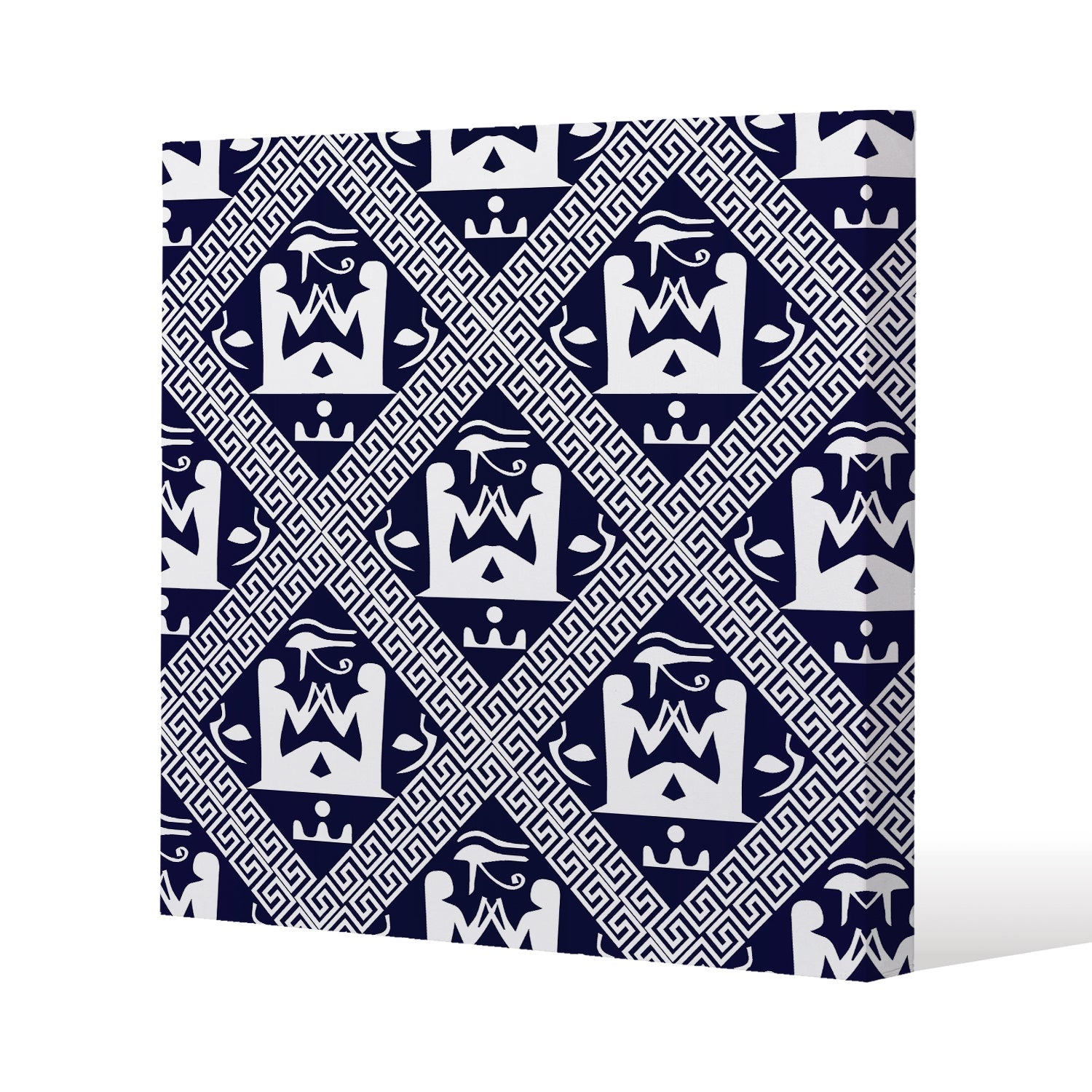 Egyptian Hieroglyphs in Navy Slim Style Canvas Print 50x50cm , 15mm Slim Real wood.
