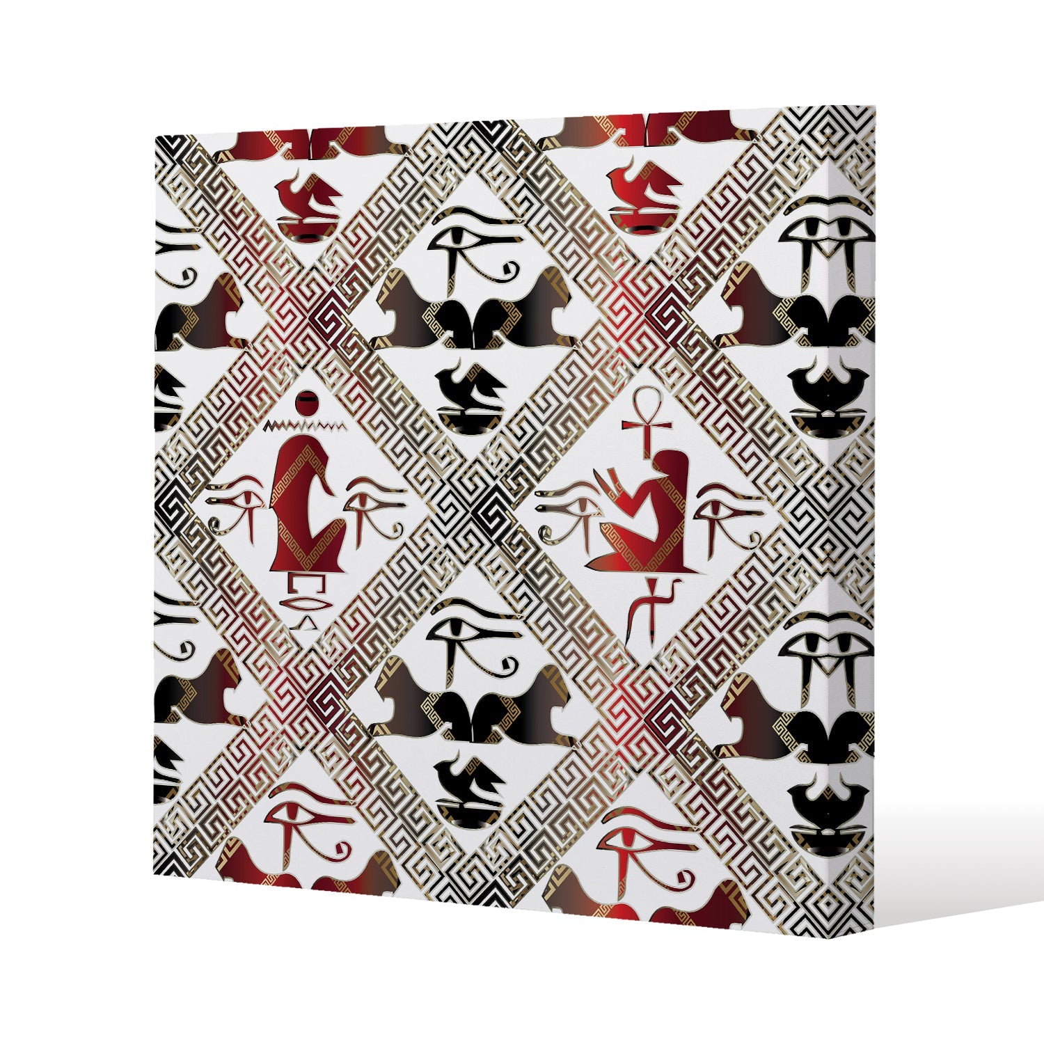 Egyptian Hieroglyphs in Red & Black Slim Style Canvas Print 30x30cm , 15mm Slim Real wood.