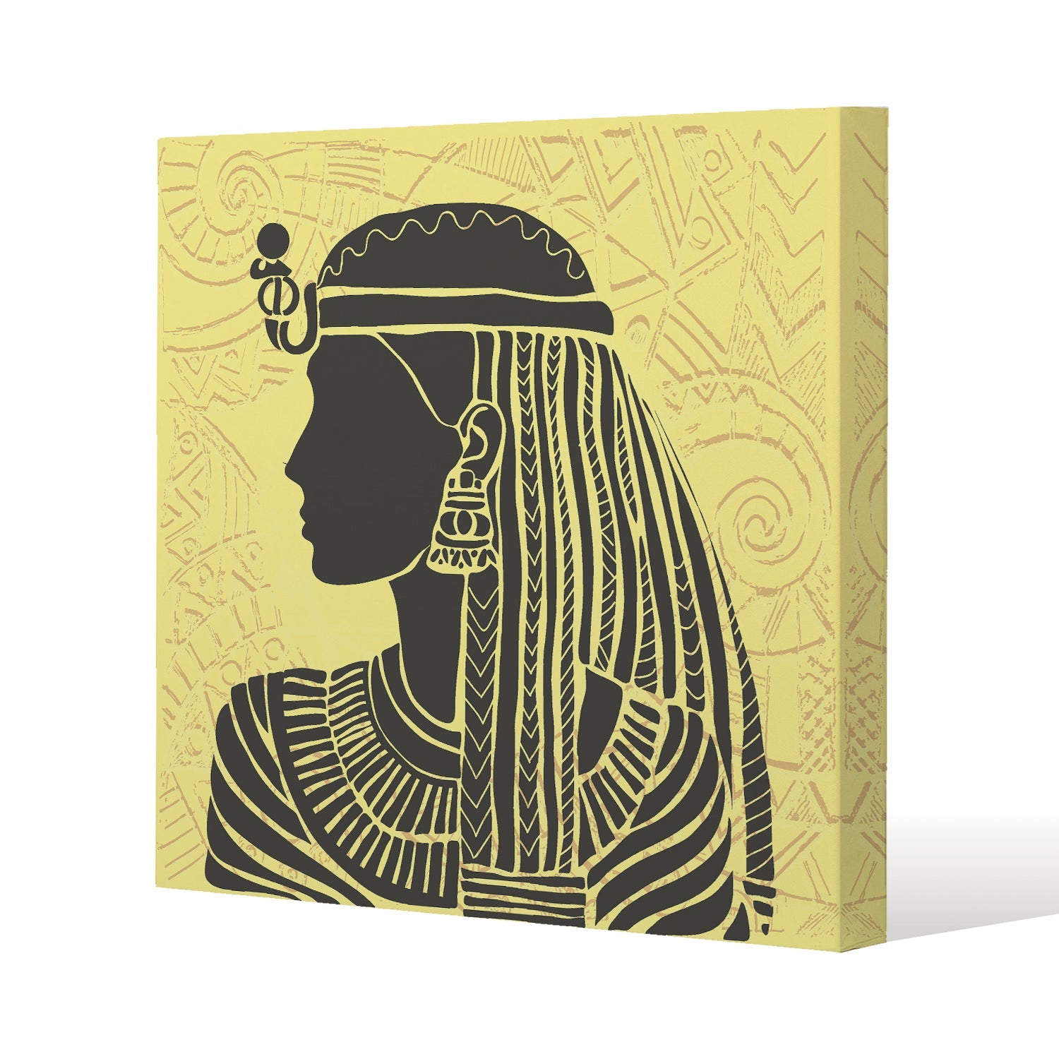Egyptian Women on Yellow Slim Style Canvas Print 20x20cm , 15mm Slim Real wood.