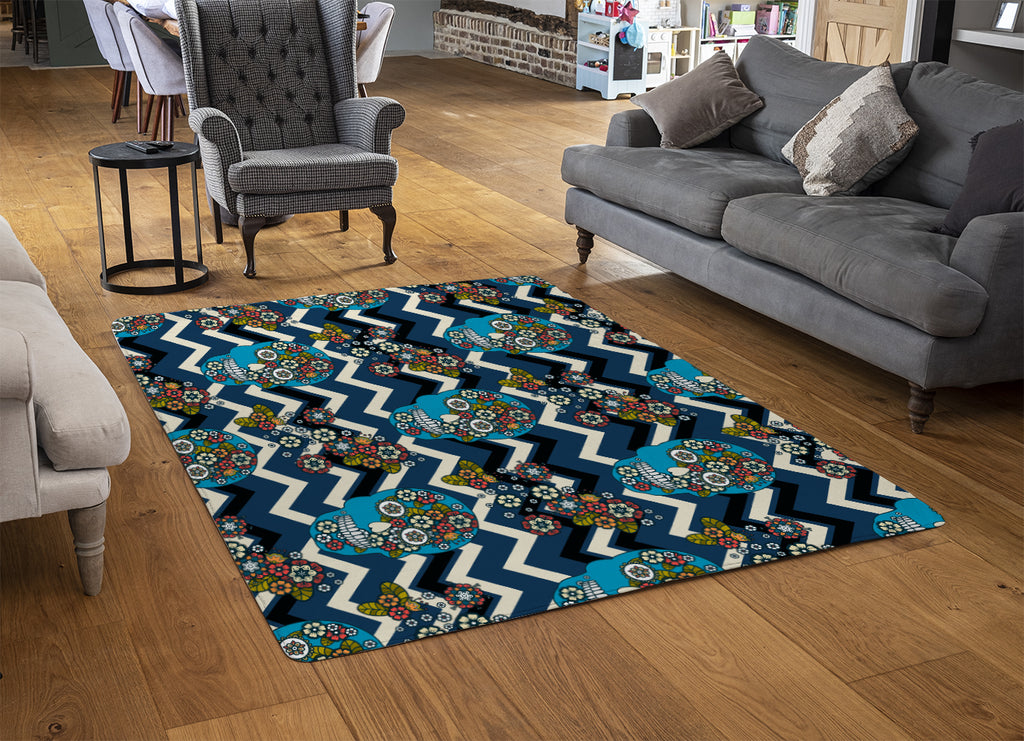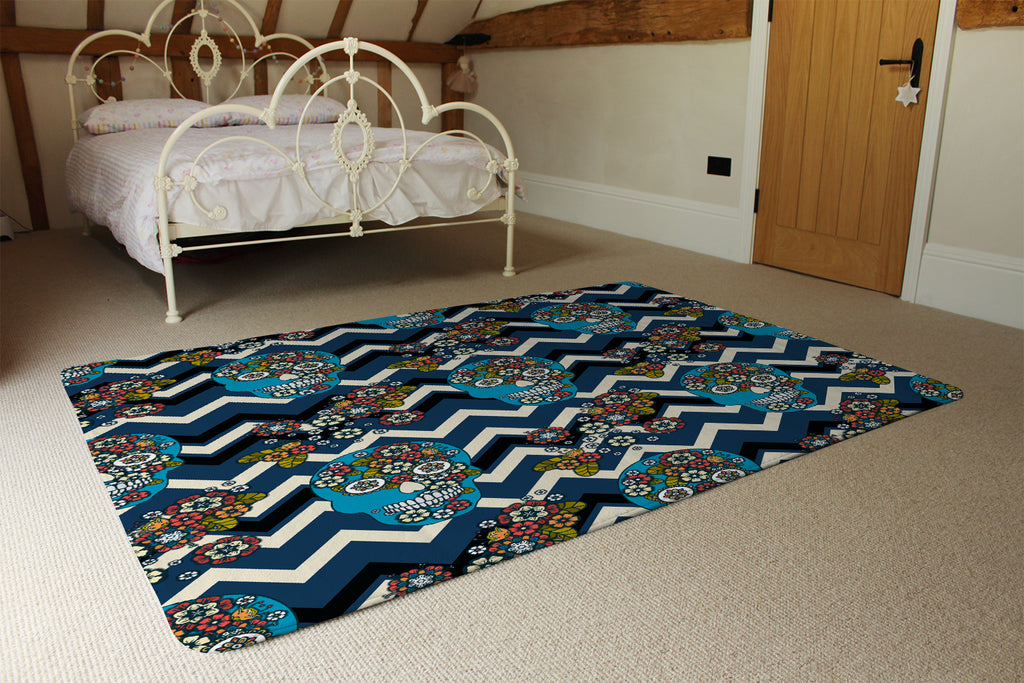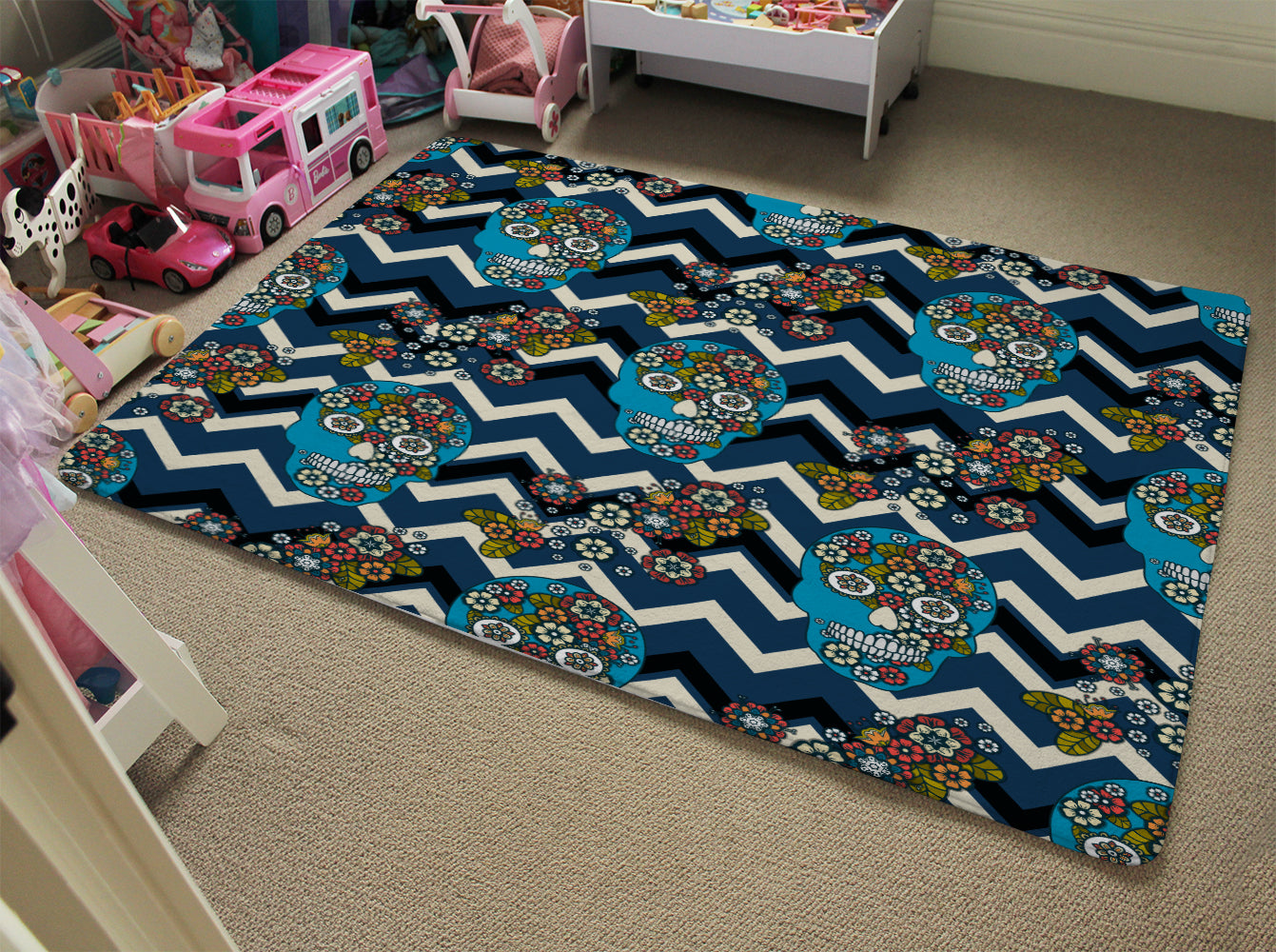 Embroidery colorful simplified ethnic skull Blue pattern (Rug)