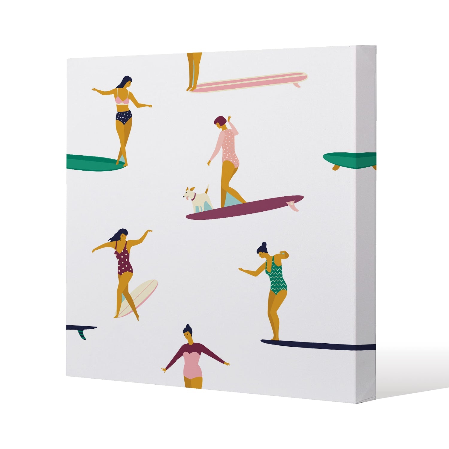 Female Surfers Slim Style Canvas Print 20x20cm , 15mm Slim Real wood.