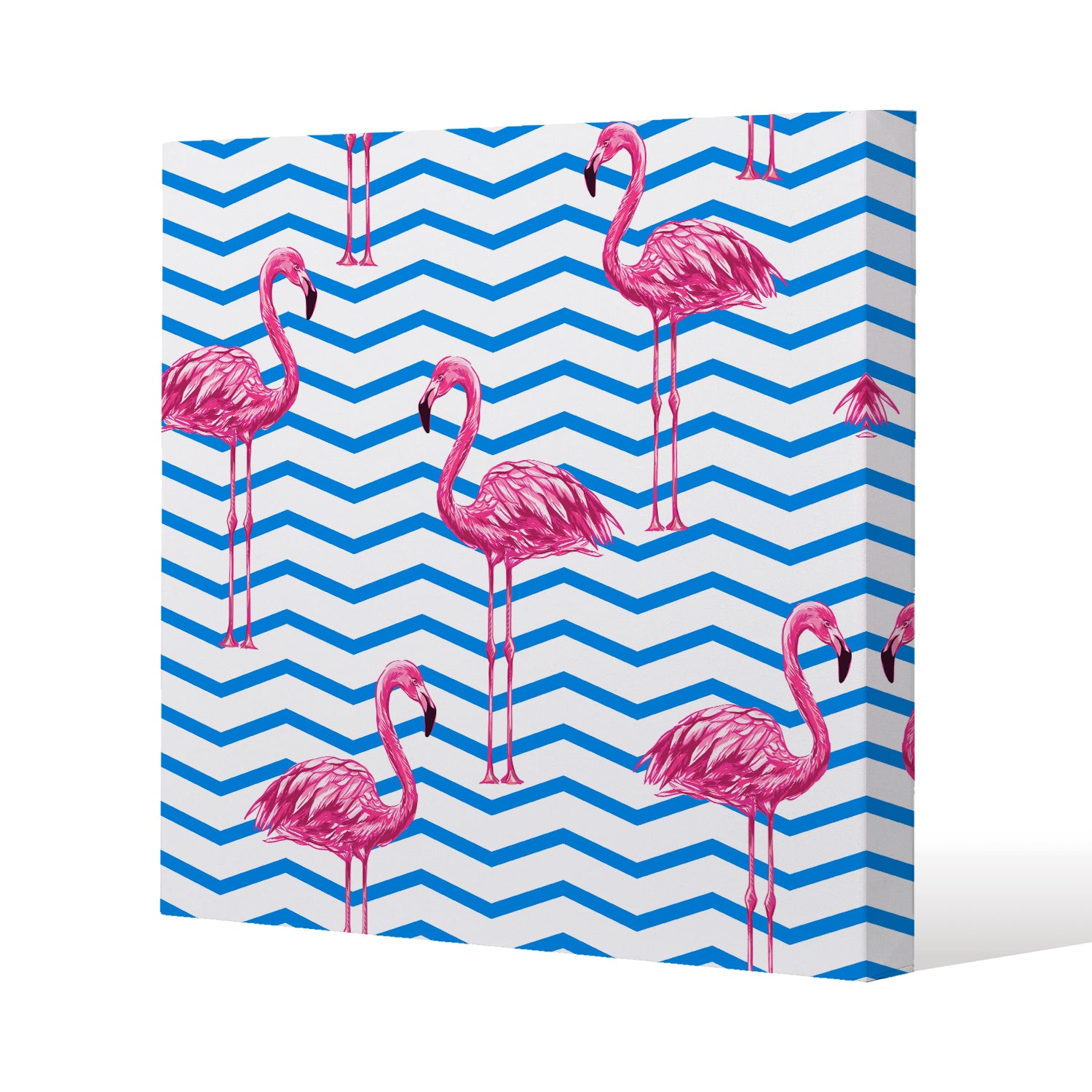Flamingo & Blue Geometric Lines (Canvas Print)