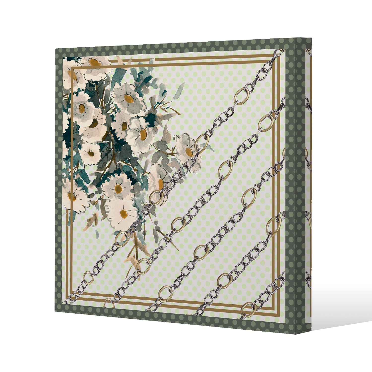Flowers & Chain Links Slim Style Canvas Print 60x60cm , 15mm Slim Real wood.