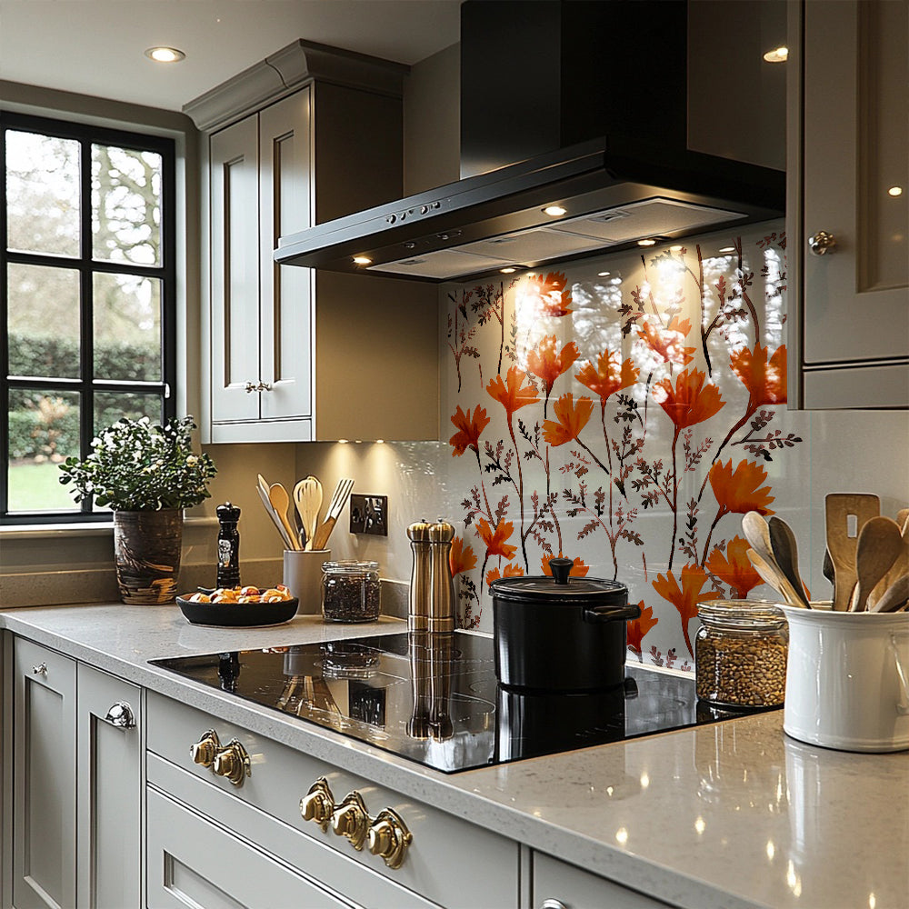 Bring bold artistry into your kitchen with a splashback that combines vibrant colors and sleek, toughened glass. The durable, heat-resistant material is built to last, while its smooth, glossy surface is easy to clean. Light-reflecting and eye-catching, this splashback adds a modern touch to any space. A perfect blend of style and functionality for today’s kitchens.