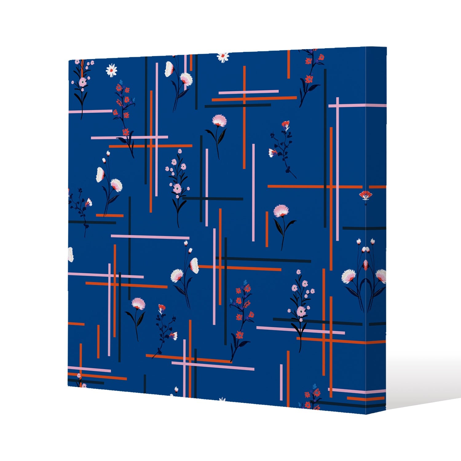 Flowers with check grid for fashion Slim Style Canvas Print 60x60cm , 15mm Slim Real wood.