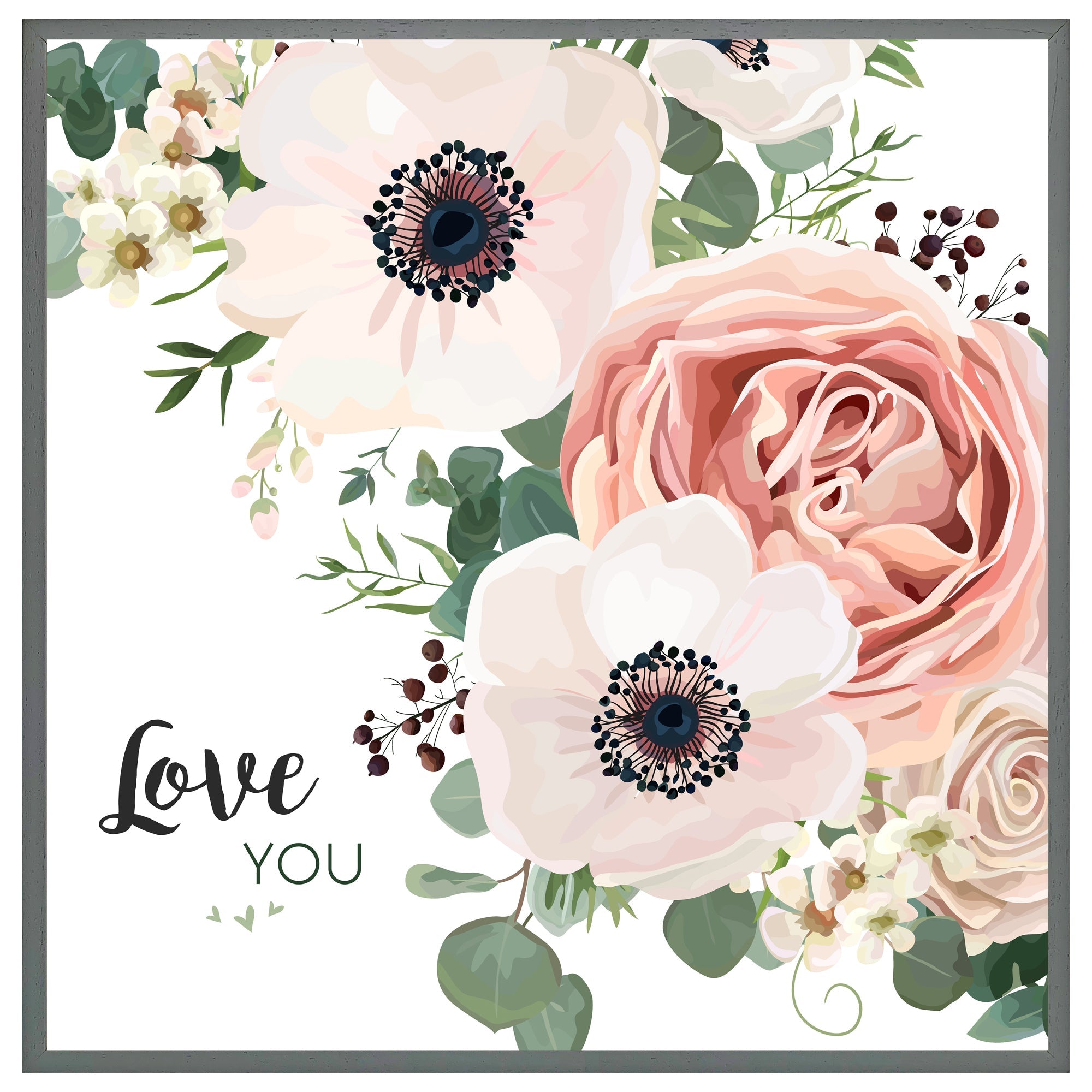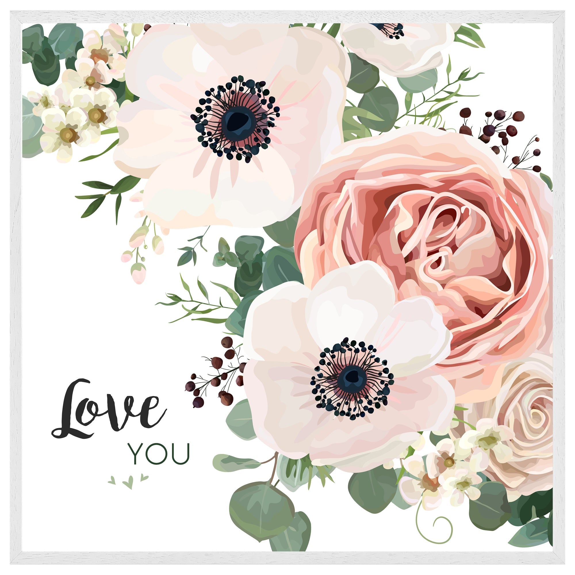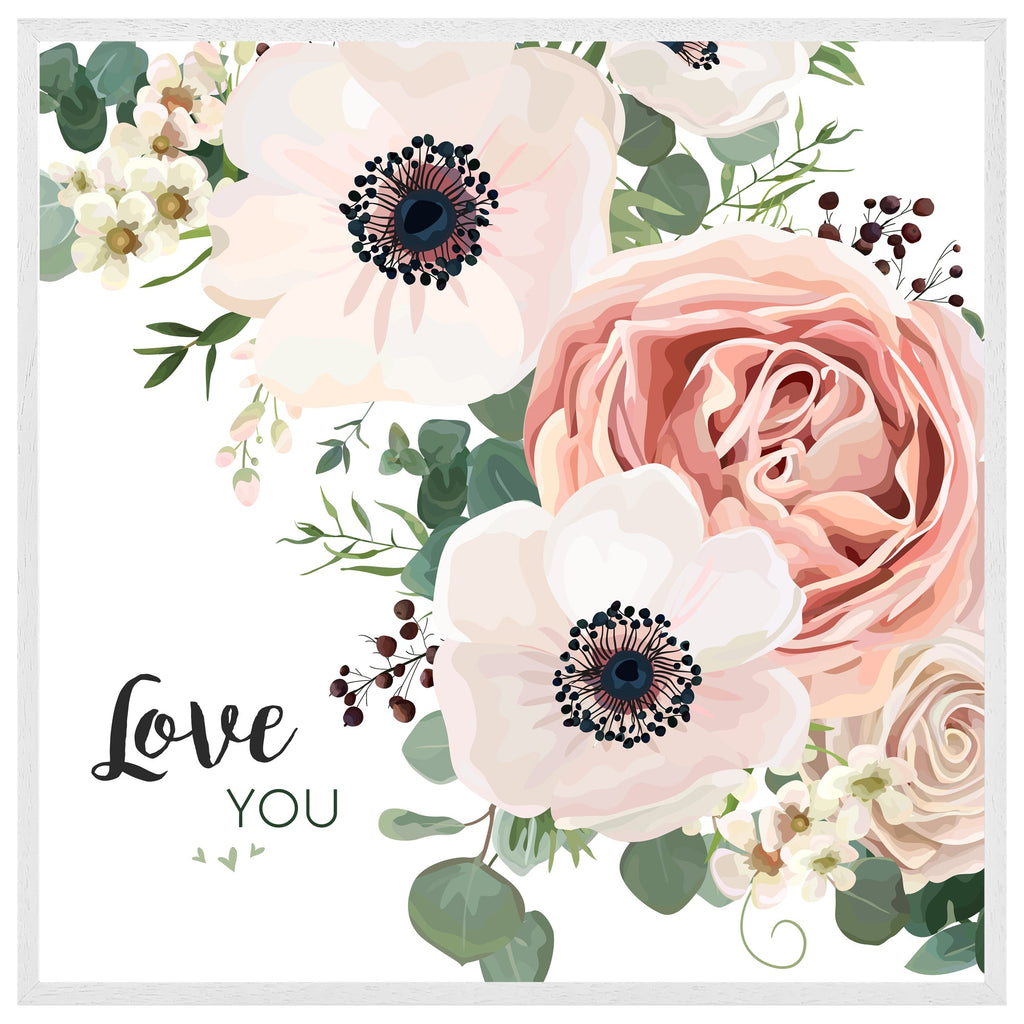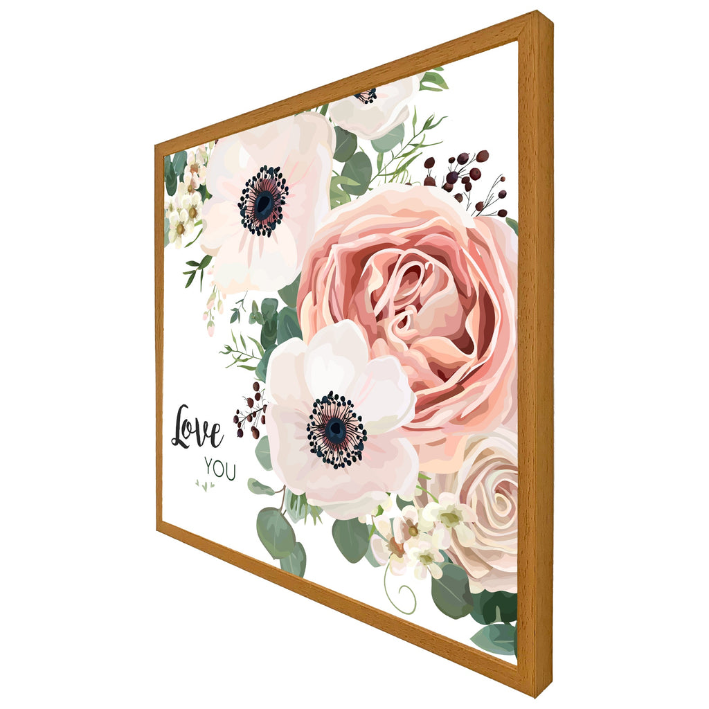 Garden flower, pink peach rose, white anemone (picture Frame)
