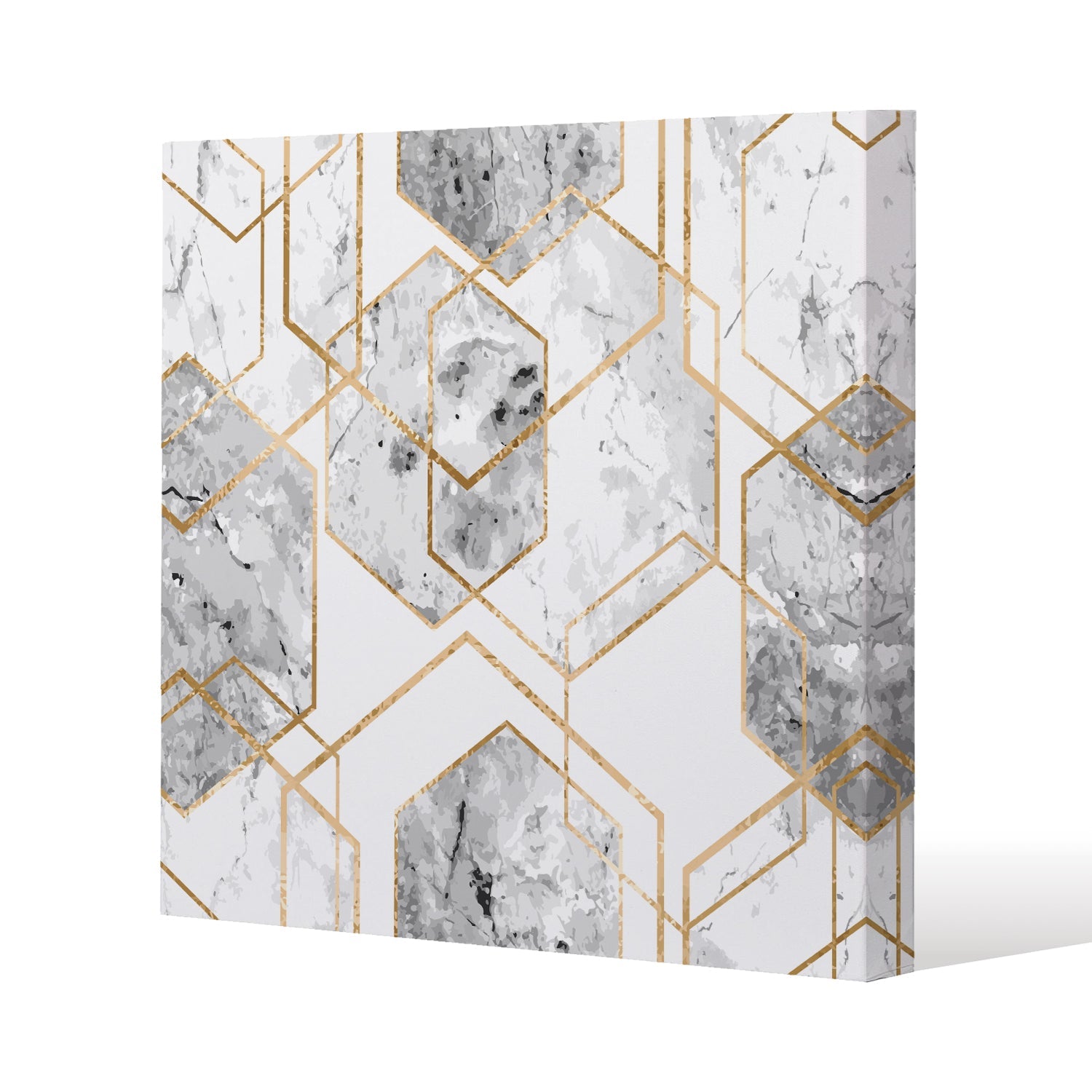 Geometric marble pattern with gold glitter Slim Style Canvas Print 90x90cm , 15mm Slim Real wood.