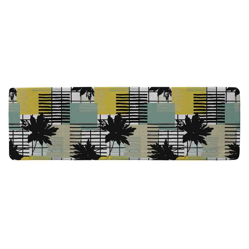 Geometric Shape & Leaf Print in Yellow & Green (Runner Rug)