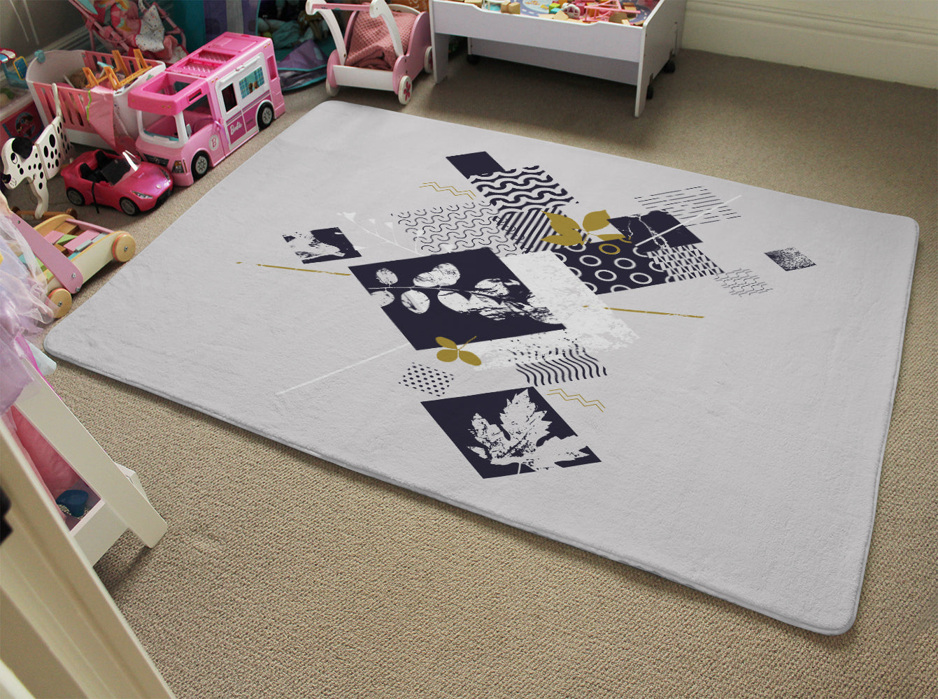 Geometric Squares & Leaves (Rug)