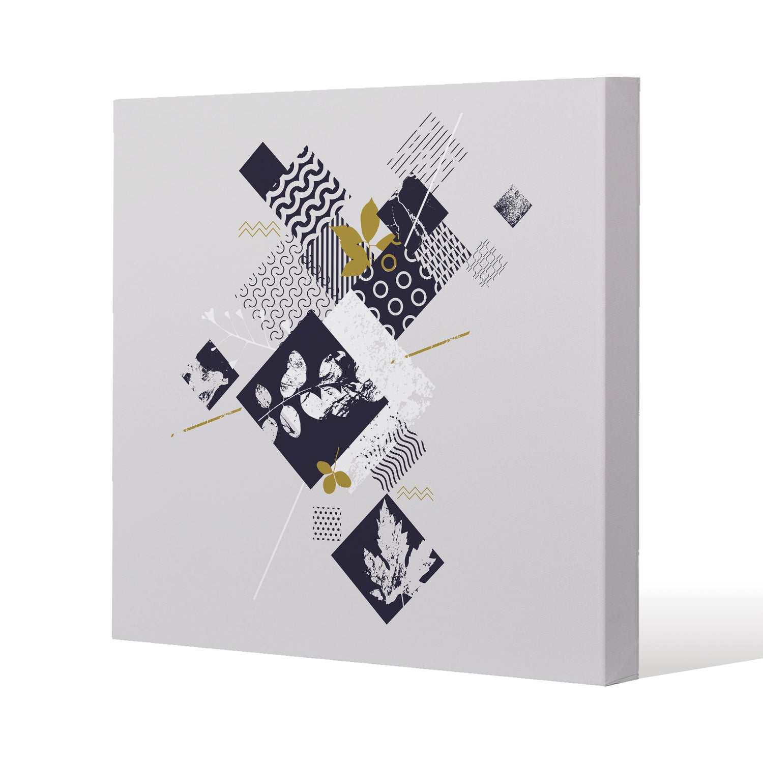 Geometric Squares & Leaves Slim Style Canvas Print 90x90cm , 15mm Slim Real wood.