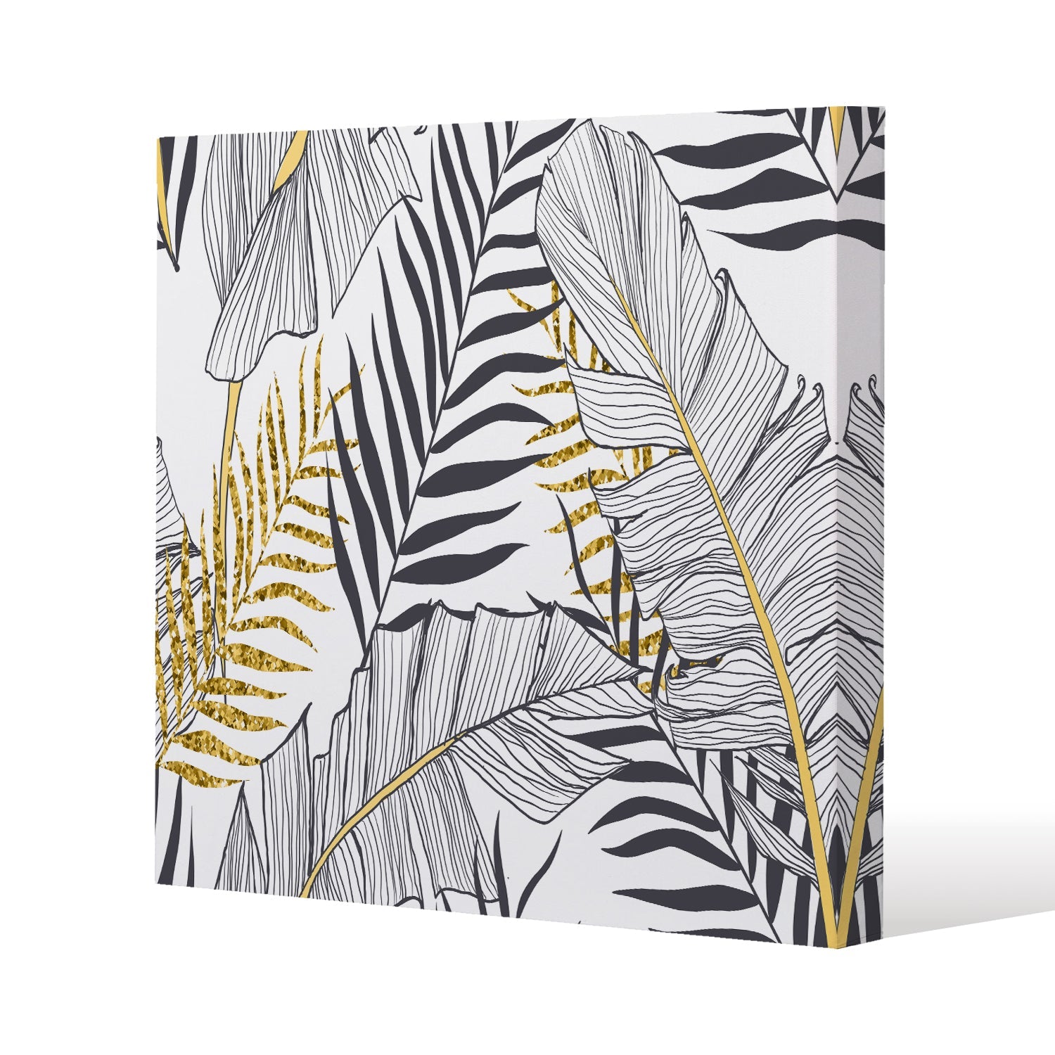 Gold & Black Leaves Slim Style Canvas Print 20x20cm , 15mm Slim Real wood.