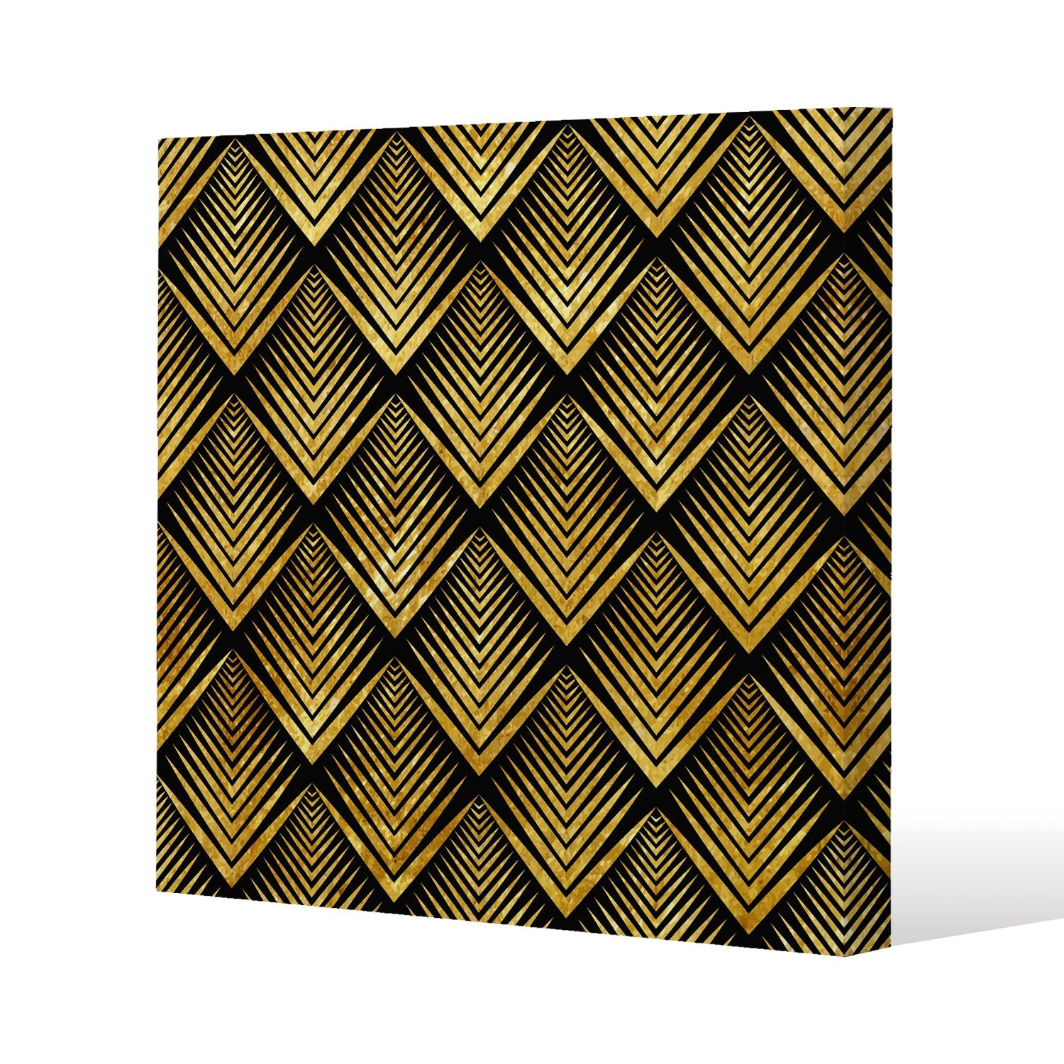 Golden Geometric Flower Pattern Slim Style Canvas Print 50x50cm , 15mm Slim Real wood.