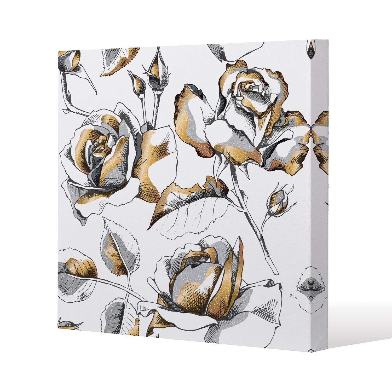 Golden Roses Slim Style Canvas Print 90x90cm , 15mm Slim Real wood.