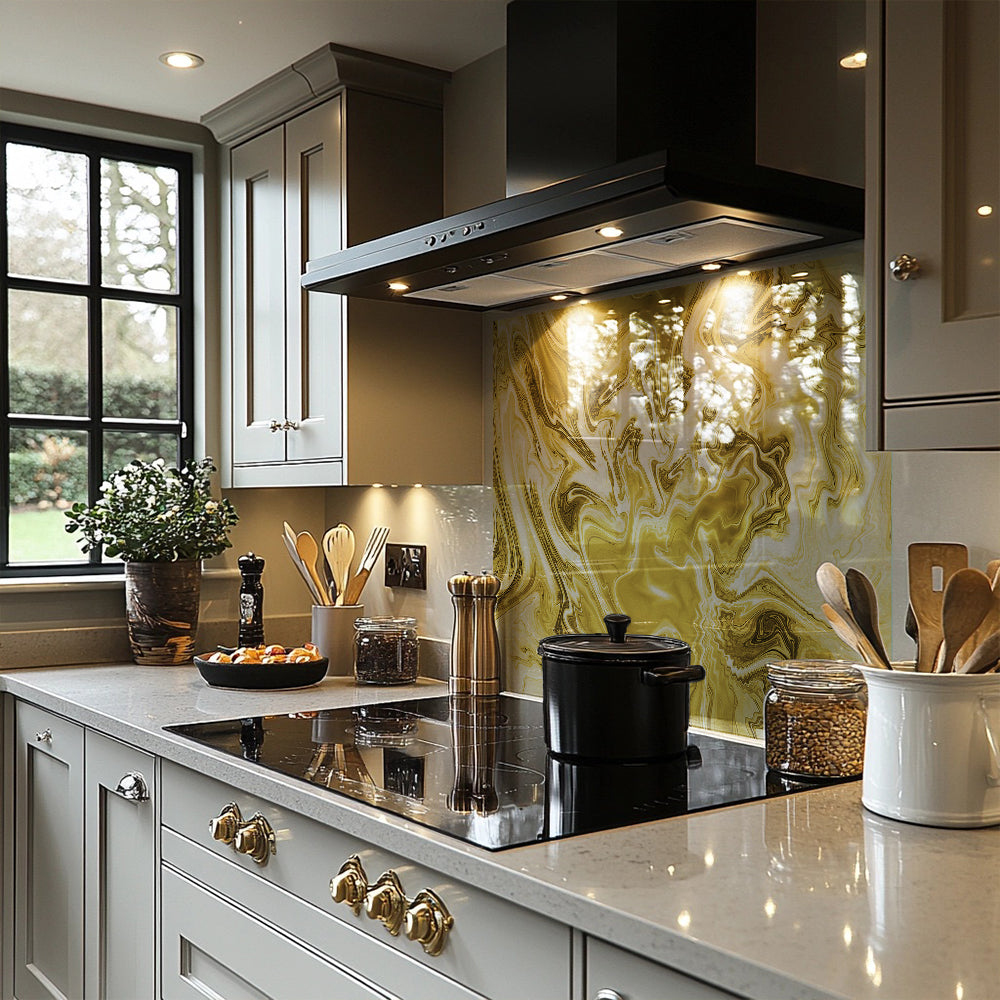 Bring bold artistry into your kitchen with a splashback that combines vibrant colors and sleek, toughened glass. The durable, heat-resistant material is built to last, while its smooth, glossy surface is easy to clean. Light-reflecting and eye-catching, this splashback adds a modern touch to any space. A perfect blend of style and functionality for today’s kitchens.