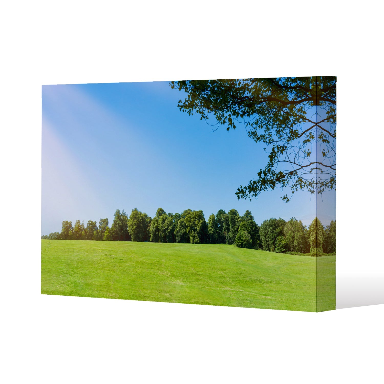 grass field with forest trees and environment public park with sun rays Slim Style Canvas Print 60x90cm , 15mm Slim Real wood.