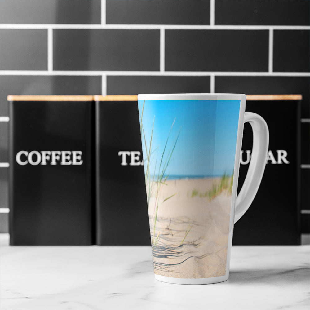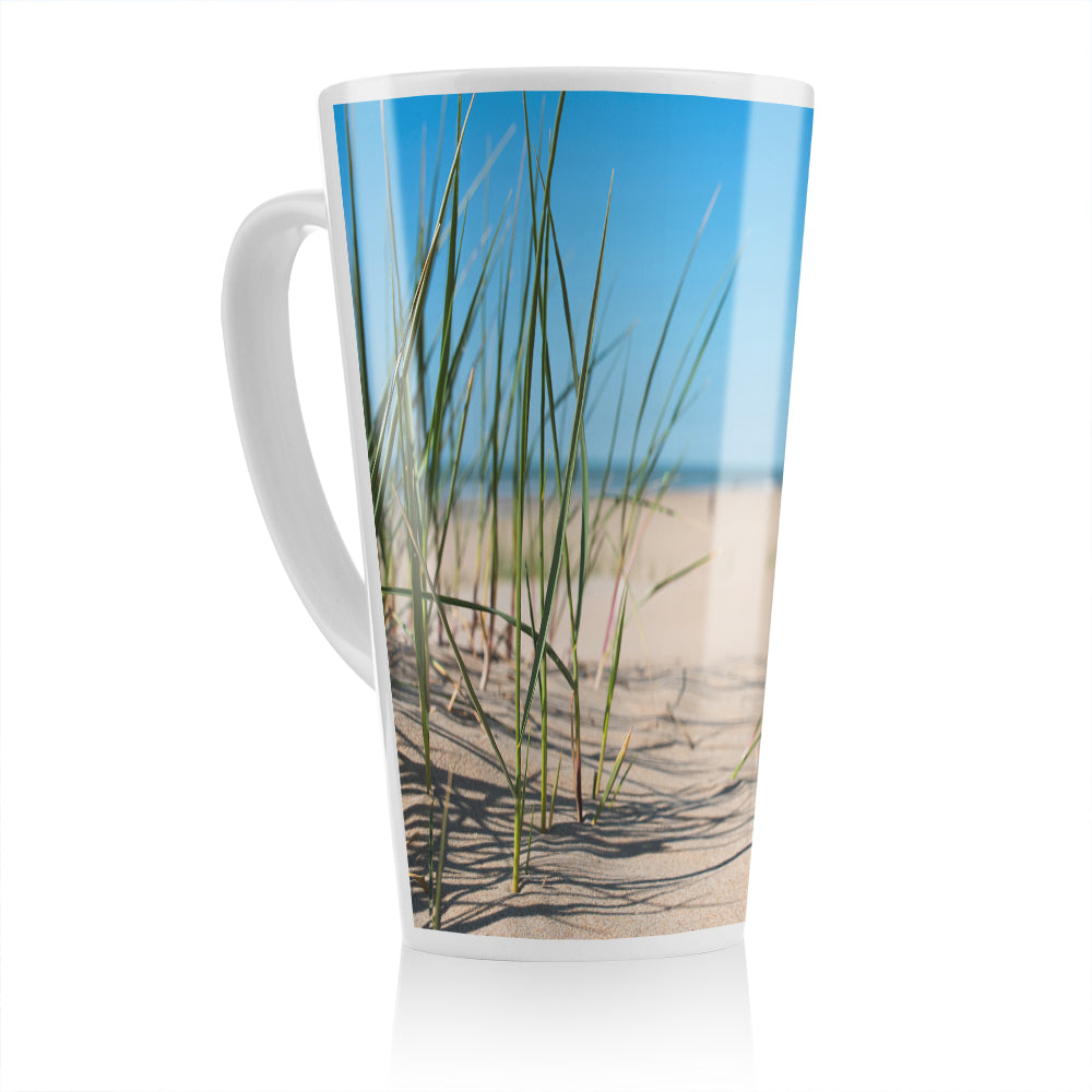 Grass in the sand dunes with the lake in the background Designer Latte Mug