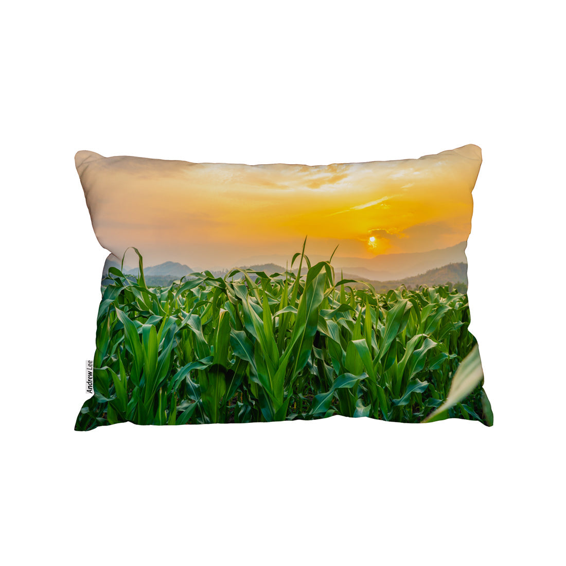 Green Corn Field In Agricultural Garden And Light Shines Sunset (Cushion)