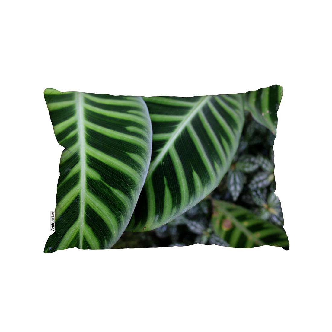 Green Leaves With White And Yellow Structure In Exotic Jungle Setting (Cushion)