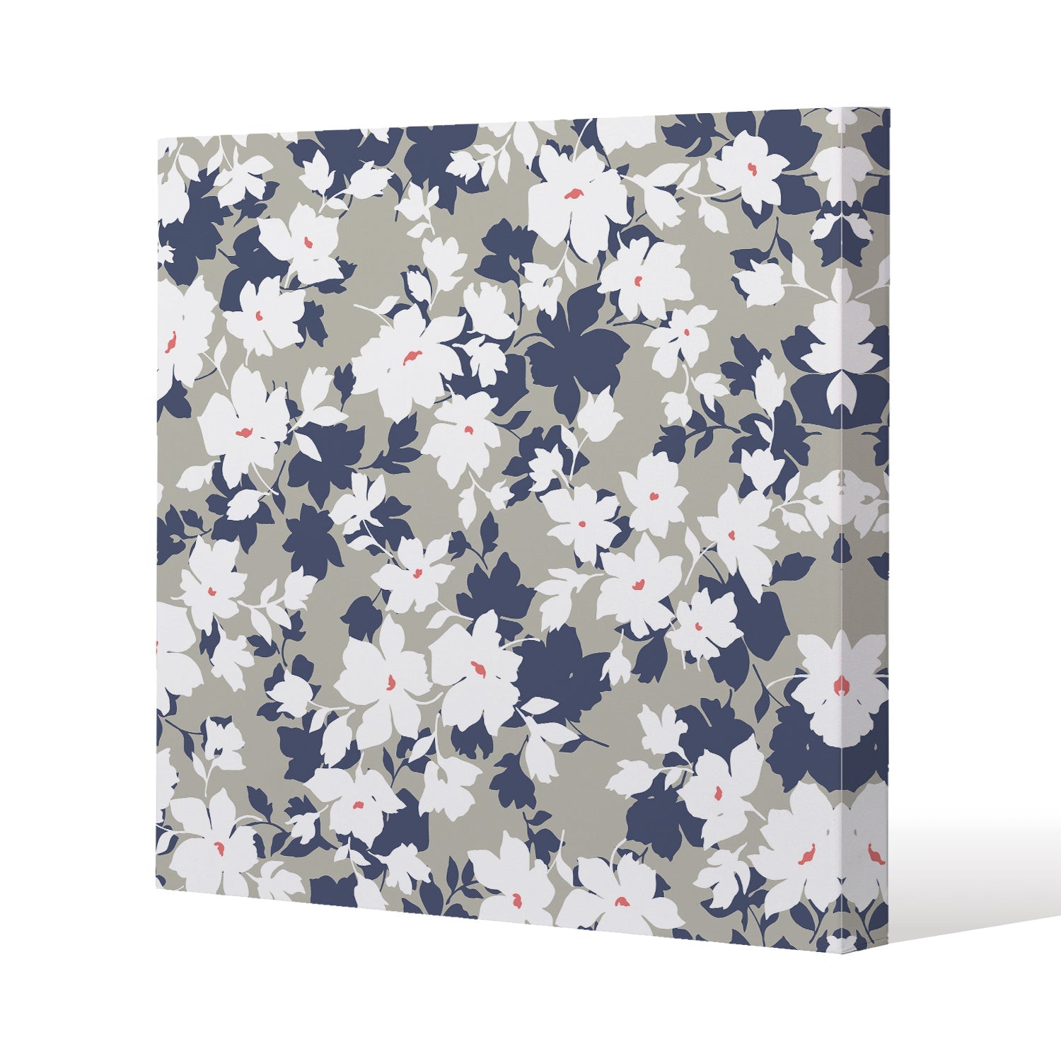 Grey, Purple & White Flowers Slim Style Canvas Print 75x75cm , 15mm Slim Real wood.