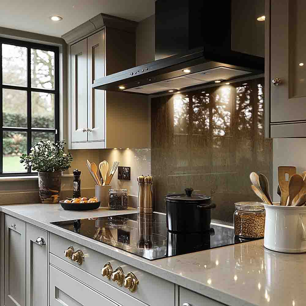 Bring bold artistry into your kitchen with a splashback that combines vibrant colors and sleek, toughened glass. The durable, heat-resistant material is built to last, while its smooth, glossy surface is easy to clean. Light-reflecting and eye-catching, this splashback adds a modern touch to any space. A perfect blend of style and functionality for today’s kitchens.