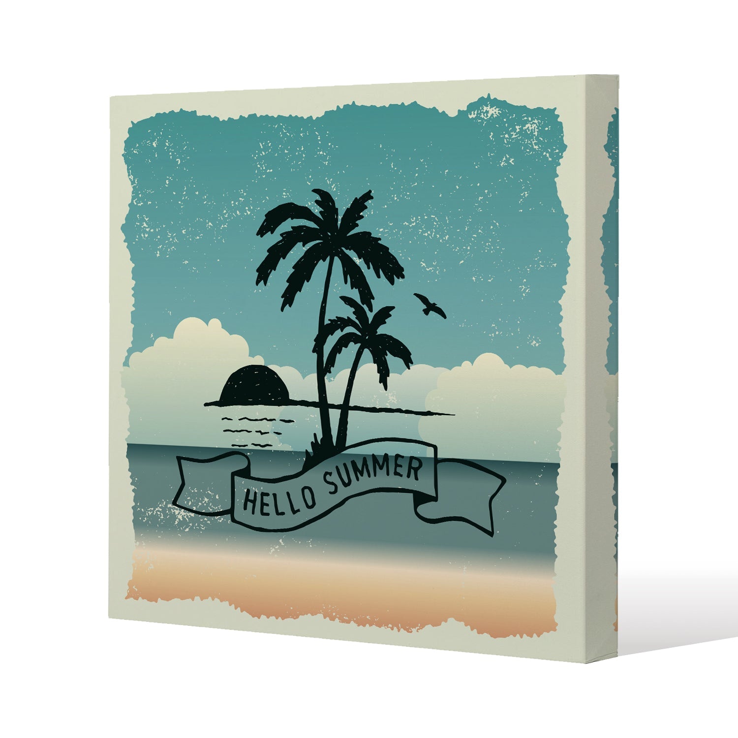 Hello Summer Slim Style Canvas Print 30x30cm , 15mm Slim Real wood.