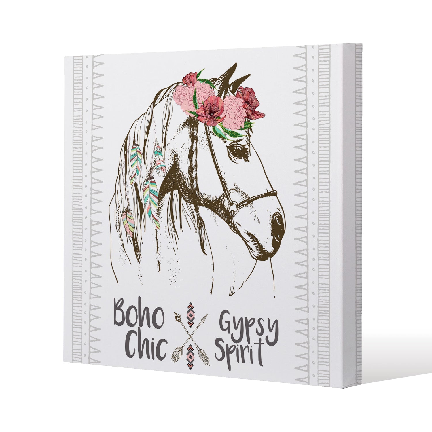 horse with flower Chic Slim Style Canvas Print 75x75cm , 15mm Slim Real wood.