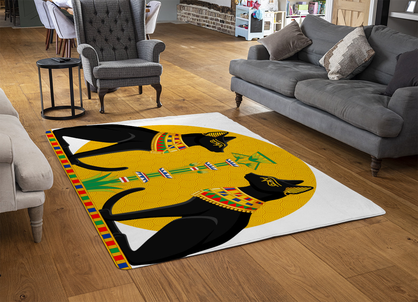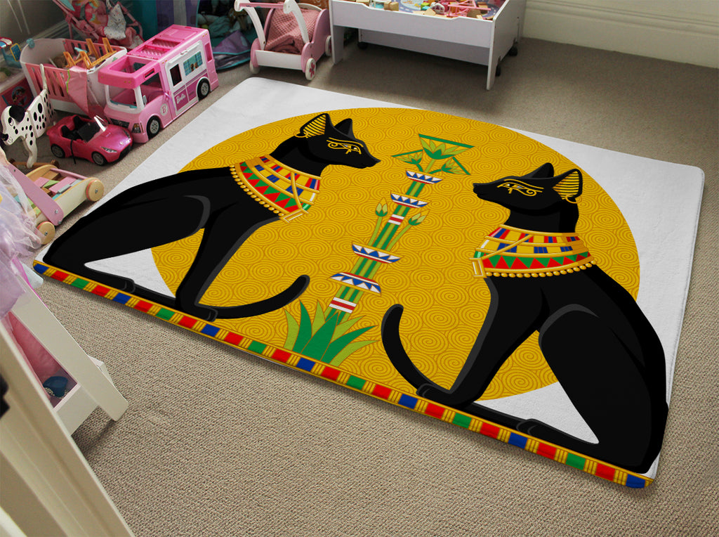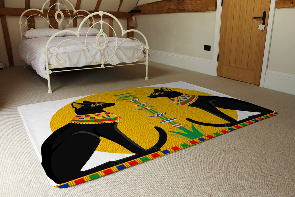 Illustration of Black Egyptian Cats with Papyrus (Rug)